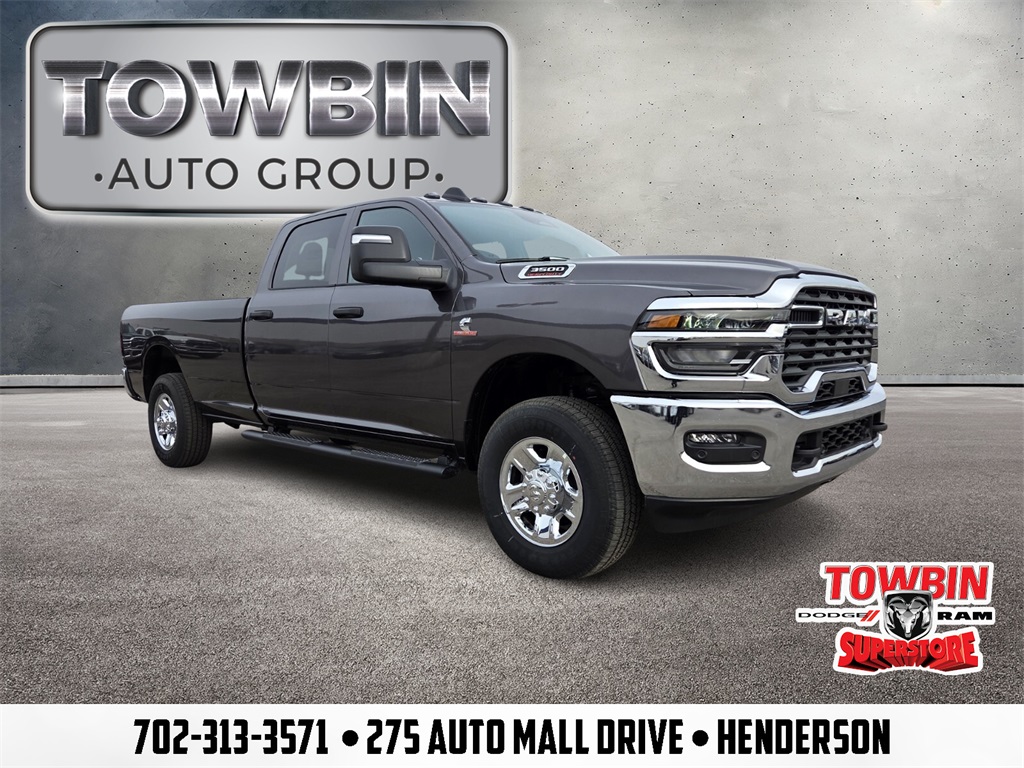 2026 Ram 3500 Tradesman Granite Crystal Metallic Clearcoat. Welcome to Towbin Dodge, #1 Dodge dealer in the world! This isnt just any used car- it has been handpicked and thoroughly inspected to meet the high standards we are known for, From everyday budget options to SRT and Luxury models, weve got something for every lifestyle and price point. At Towbin we make used car buying easy, affordable, and exciting. 4WD 8-Speed Automatic 6.7L I6. For your understanding: Sale Price includes guaranteed factory rebates for Nevada residents on vehicle purchase, not leases. Some residency restrictions do apply. Please inquire with a sales representative about your residency pricing and discounts and any additional rebates or incentives that you may qualify for. Final selling price does not include tax, tag, title, and $699 doc fee. Dealer retains all factory rebates and incentives. Final Selling Price may include pricing adjustments due to market demand. Please inquire with a sales representative for these specific models. The factory rebates may not be available on this vehicle if you elect to take advantage of a Special Alternative APR or Special Lease program. While great effort is made to ensure the accuracy of the information on this site, errors may occur so please verify information with a customer service rep. Prices and payments are subject to change based on manufacturer incentives. To verify 100% accuracy of pricing please call us at (702) 558-3800 or by visiting us at the dealership in person.