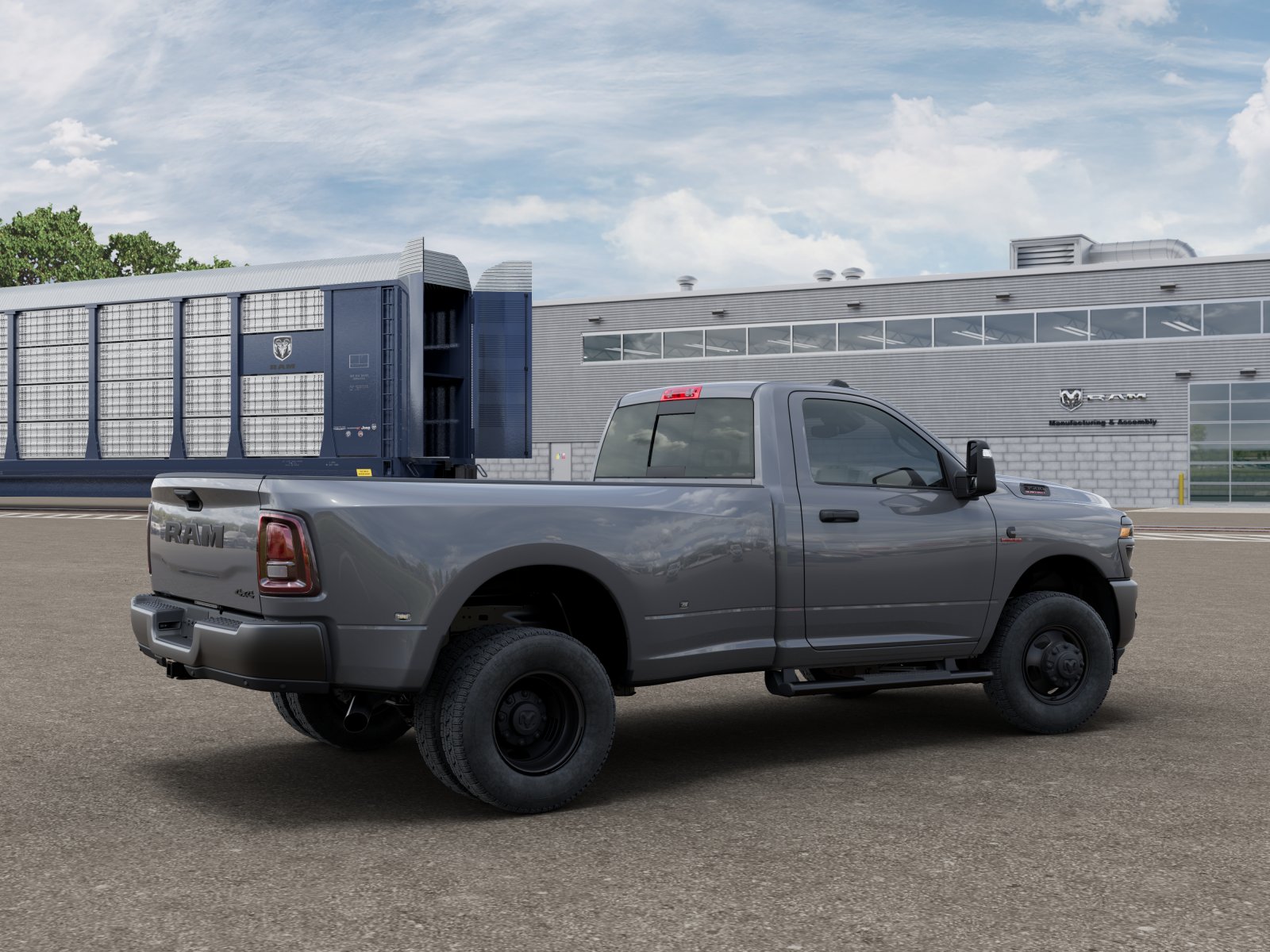 The 2026 Ram 3500 Tradesman Regular Cab 4x4 features a 6.7L I6 Cummins HO Turbo Diesel engine and a 8-speed TorqueFlite HD automatic transmission. This heavy-duty truck is designed for commercial use, offering a spacious 8' box, advanced safety features, and modern connectivity. The Ceramic Gray Clear-Coat exterior is complemented by a black interior, and the vehicle is equipped with features to enhance comfort, towing capacity, and driver assistance.