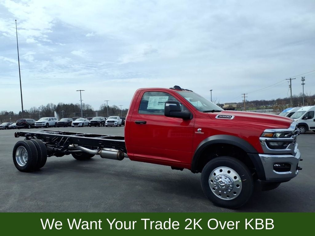 Price includes: $2500 - 2026 National Bonus Cash . Exp. 03/31/2026 $500 - 2026 National 2026 First Responder Bonus Cash . Exp. 01/04/2027 $500 - 2026 National 2026 Military Bonus Cash . Exp. 01/04/2027 2026 Ram 5500HD Tradesman Cummins 6.7L I6 Turbodiesel 4WD Flame Red Clearcoat 8-Speed Automatic. Kufleitner Chrysler Dodge Jeep and RAM Trucks is a state of the art dealership in Boardman, Ohio located between Cleveland and Pittsburgh. Just a short drive, we are proud to service Columbiana, Mahoning and Trumbull Counties. We keep the philosophy of a small town dealer - making friends and putting our customers first! Give us a call today at 855-601-1126 to speak with one of our highly trained Sales Professionals or stop in and check us out - conveniently located off Interstate 76. Please Remember - Tell a Friend!