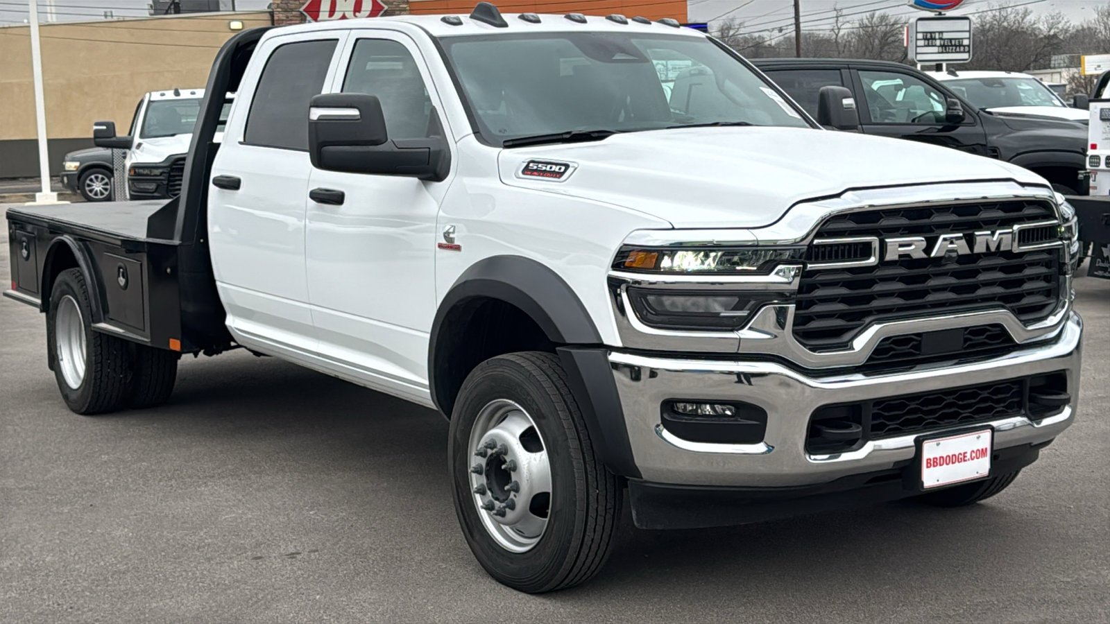 Price does not include tax, title, and license: $2500 - 2026 National Bonus Cash . Exp. 03/31/2026 4WD. Posted pricing on all vehicles. No games, no gimmicks, we sell what we advertise! Bluebonnet Chrysler Dodge is very proud to offer this superb 2026 Ram 5500HD Tradesman 4WD. Well equipped with Chrome Appearance Group (19.5 x 6.0 Steel Wheels, Bright Front Bumper, Center Hub, Chrome Grille Surround, and Matte Black Mesh with Chrome Grille), Quick Order Package 25A Tradesman, Tradesman Level 1 Equipment Group (Black Exterior Mirrors, Black Power Heated Fold Telescope Mirrors, Exterior Mirrors Courtesy Lamps, Exterior Mirrors with Heating Element, Exterior Mirrors with Supplemental Signals, Manual Folding Exterior Mirrors, Manual Telescoping Mirrors, Mirror Running Lights, Power Adjust Mirrors, Power-Adjustable Convex Aux Mirrors, Rear Window Defroster, Trailer Brake Control, and Trailer Light Check), 4-Wheel Disc Brakes, 4.44 Axle Ratio, 40/20/40 Split Bench Seat, 4G LTE Wi-Fi Hot Spot, 6 Speakers, ABS brakes, Air Conditioning, AM/FM radio: SiriusXM, Apple CarPlay, Apple CarPlay/Android Auto, Compass, Connectivity - US/Canada, Delay-off headlights, Driver door bin, Dual front impact airbags, Dual rear wheels, Electronic Stability Control, Emergency communication system: RAM Connect, For Details, Visit DriveUconnect.com, Front anti-roll bar, Front Armrest with Cupholders, Front Center Armrest w/Storage, Front fog lights, Front License Plate Bracket, Front reading lights, Fully automatic headlights, Global Telematics Box Module, Google Android Auto, GPS Antenna Input, Integrated Voice Command with Bluetooth, Manual Adjust 4-Way Driver Seat, Manual Adjust 4-Way Front Passenger Seat, Manufacturer's Statement of Origin, Occupant sensing airbag, Outside temperature display, Overhead console, Panic alarm, ParkView Rear Back-Up Camera, Passenger door bin, Passenger vanity mirror, Power steering, Power Take-Off Right/Left, Power windows, Radio data system, Radio: Uconnect 5 with 8.4 Display, Rear anti-roll bar, Rear Folding Seat, Rear reading lights, Remote keyless entry, Remote USB Port - Charge Only, Speed control, Tachometer, Temperature and Compass Gauge, Tilt steering wheel, Traction control, Variably intermittent wipers, Voltmeter, and Wheels: 19.5 x 6.0 Black Painted Steel.