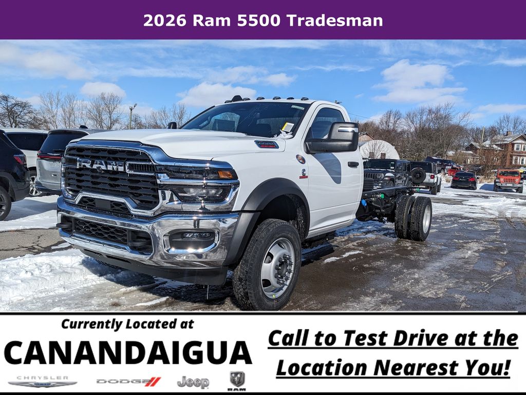 Discover the power and capability of the 2026 Ram 5500HD Tradesman TurboDiesel 4x4. This rugged workhorse is built to handle the toughest jobs with ease, thanks to its impressive Cummins 6.7L I6 Turbodiesel engine and 8-speed automatic transmission. With its impressive 19,500 lb GVWR, this Ram 5500HD is ready to tackle any task you throw its way. The Cummins diesel engine delivers exceptional power and efficiency, while the 8-speed Torqueflite Heavy Duty transmission ensures smooth, responsive performance. Plus, the included Selective Catalytic Reduction (Urea) system and B-20 Bio Diesel capability make this truck a smart, eco-friendly choice. Beyond the impressive powertrain, this Tradesman model comes loaded with a wealth of premium features designed to enhance your driving experience. The Uconnect 5 Navigation system with 12-inch display keeps you connected and entertained, while the Dual Zone Automatic Temperature Control ensures everyone on board stays comfortable. The Heavy Duty Front Suspension Group and Upgraded Rear HD Stabilizer Bar provide a smooth, confident ride, even when towing or hauling heavy loads. Safety is also a top priority, with features like Electronic Stability Control, Traction Control, and a comprehensive airbag system to give you peace of mind on the road. The Remote Start System and Keyless Entry make it easy to get going, while the Trailer Brake Control and Trailer Tow Pages simplify the towing process. This 2026 Ram 5500HD Tradesman TurboDiesel 4x4 is the perfect blend of power, capability, and premium features. Experience the difference for yourself and schedule a test drive today. We're confident you'll be impressed by the performance and value this truck has to offer.