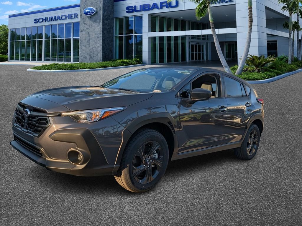 2026 Subaru Crosstrek Base 2.5L 4-Cylinder DOHC 16V AWD Magnetite Gray Metallic/Crystal Black Silica. At Schumacher Subaru of Delray, we understand that buying a car is more than just a transaction—it's about finding the perfect Subaru vehicle that matches your lifestyle. Whether you're looking for a new Subaru Forester, Outback, Crosstrek, or Ascent in South Florida, we're here to help. We take the time to get to know your preferences, hobbies, and driving habits to ensure you drive away in a Subaru that fits your needs. Subaru models are equipped with a suite of advanced technology and safety features, including the Subaru STARLINK Multimedia System with Apple CarPlay and Android Auto integration, standard Subaru EyeSight Driver Assist Technology, and the symmetrical all-wheel drive system that delivers unmatched performance and safety. Located in Delray Beach, we proudly serve Subaru buyers in South Florida, including all cities south of Lake Worth down to Miami. Our reach extends westward to areas like Wellington, Loxahatchee, Royal Palm Beach, and Westlake. Whether you're in Boca Raton, Boynton Beach, Deerfield Beach, Coconut Creek, Coral Springs, Pompano Beach, Fort Lauderdale, Hollywood, Aventura, or Miami, Schumacher Subaru of Delray is your go-to dealership for new and used Subaru vehicles.