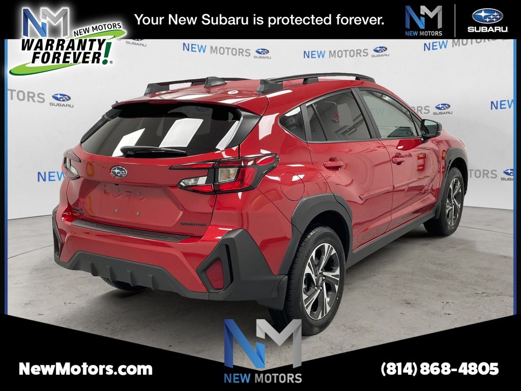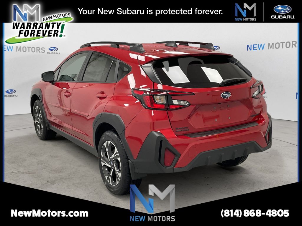 What helps set us apart from all the rest at New Motors is our New Motors Pledge package. This includes the following for every new and used vehicle purchased: * Warranty Forever program on all purchased Subaru vehicles (lifetime powertrain warranty) * Receive free inspections on all leased Subaru vehicles (excludes emissions and sticker fees) * 40+ Loaner vehicles * 10% off Accessories (1st year) * Free car wash every service visit * Multi-point vehicle inspection * Free Alignment check with every service visit * Courtesy Shuttle * 2 dedicated delivery/product specialists on staff * Complimentary High Speed Wi-fi Internet * Complimentary beverages and snacks * At New Motors we make our pledge to you to make sure that you're back on the road with affordability, reliability, and style. For more information give us a call at (814) 868-5516. Red 2026 Subaru Crosstrek Premium 2.5L 4-Cylinder DOHC 16V 26/33 City/Highway MPG.