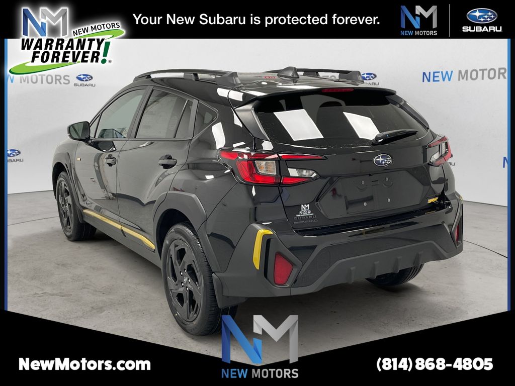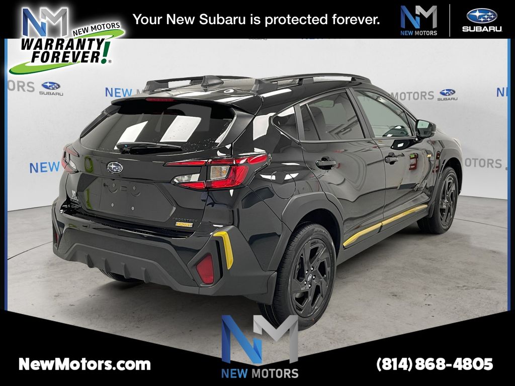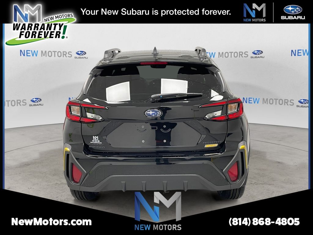 What helps set us apart from all the rest at New Motors is our New Motors Pledge package. This includes the following for every new and used vehicle purchased: * Warranty Forever program on all purchased Subaru vehicles (lifetime powertrain warranty) * Receive free inspections on all leased Subaru vehicles (excludes emissions and sticker fees) * 40+ Loaner vehicles * 10% off Accessories (1st year) * Free car wash every service visit * Multi-point vehicle inspection * Free Alignment check with every service visit * Courtesy Shuttle * 2 dedicated delivery/product specialists on staff * Complimentary High Speed Wi-fi Internet * Complimentary beverages and snacks * At New Motors we make our pledge to you to make sure that you're back on the road with affordability, reliability, and style. For more information give us a call at (814) 868-5516. Black / Silver 2026 Subaru Crosstrek Sport 2.5L 4-Cylinder DOHC 16V 26/33 City/Highway MPG