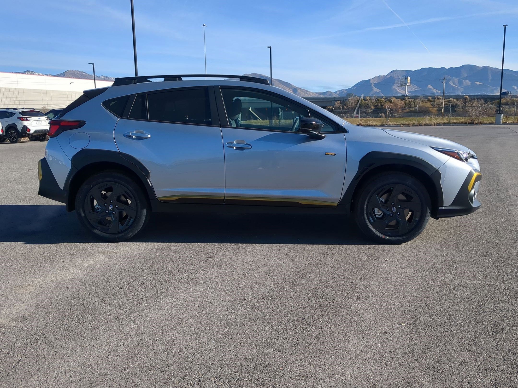 The 2026 Subaru Crosstrek Sport AWD is a new, compact SUV with a fuel-efficient 2.5L engine and all-wheel drive capability. It features a sport cloth interior with yellow stitching, advanced safety technologies, and Subaru's EyeSight driver assistance system. The vehicle is designed for comfort, versatility, and performance, making it a great choice for a variety of driving needs.