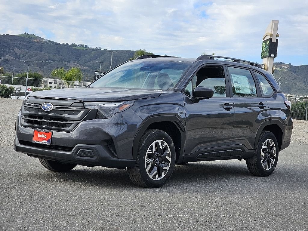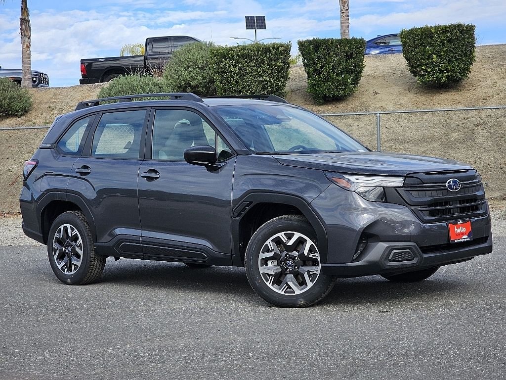 Hello Subaru of Temecula is pumped up to offer this great-looking 2026 Subaru Forester in Magnetite Gray Metallic, beautifully equipped with All-Weather Floor Liners, Automatic temperature control, Wheels: 17" x 7.0 J Dark Metallic Aluminum-Alloy, 4 Speakers, 4-Wheel Disc Brakes, ABS brakes, Air Conditioning, Alloy wheels, AM/FM radio: SiriusXM, Anti-whiplash front head restraints, Auto High-beam Headlights, Brake assist, Bumpers: body-color, Driver door bin, Driver vanity mirror, Dual front impact airbags, Dual front side impact airbags, Electronic Stability Control, Exterior Parking Camera Rear, Four wheel independent suspension, Front anti-roll bar, Front Bucket Seats, Front Center Armrest, Front dual zone A/C, Front reading lights, Fully automatic headlights, Hexagonal Patterned Cloth Upholstery, Illuminated entry, Knee airbag, Low tire pressure warning, Occupant sensing airbag, Outside temperature display, Overhead airbag, Overhead console, Panic alarm, Passenger door bin, Passenger vanity mirror, Power door mirrors, Power steering, Power windows, Radio data system, Radio: Subaru Dual 7.0" Multimedia System, Rear anti-roll bar, Rear window defroster, Rear window wiper, Remote keyless entry, Security system, Speed control, Speed-sensing steering, Split folding rear seat, Spoiler, Steering wheel mounted audio controls, Tachometer, Telescoping steering wheel, Tilt steering wheel, Traction control, Trip computer, and Variably intermittent wipers. All-Weather Floor Liners, Automatic temperature control, Wheels: 17" x 7.0 J Dark Metallic Aluminum-Alloy. 2.5L 4-Cylinder DOHC 16V AWD.