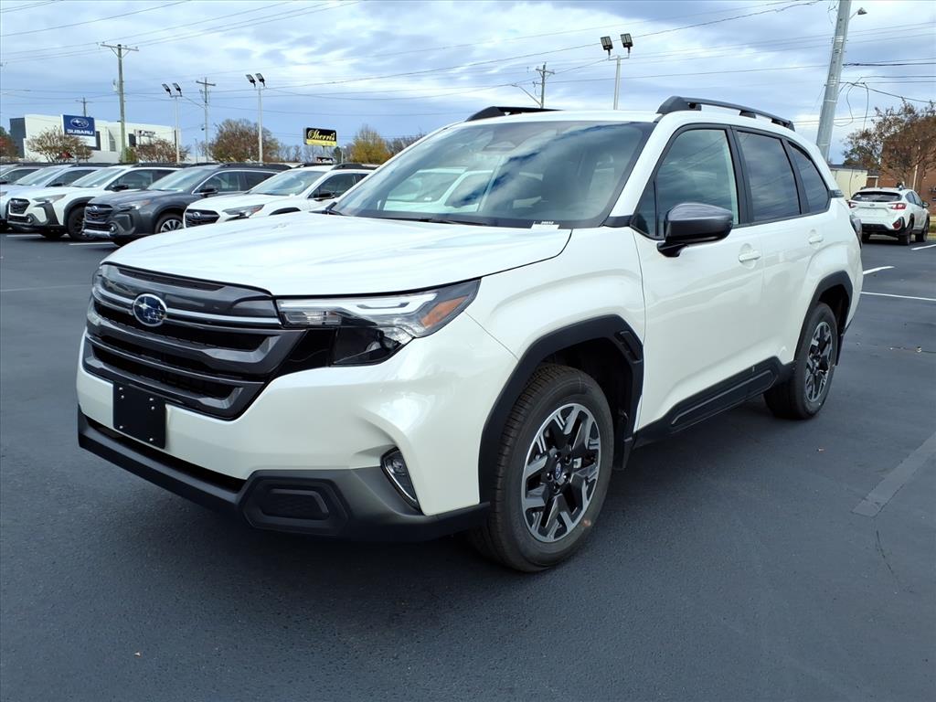 This vehicle is a 2026 Subaru Forester Premium Crossover, made with all wheel drive, 2.5 liter 4 cylinder engine, and fuel injected. It has a crystal white pearl whc exterior and a black pbc interior. It has a crash test rating of 5 out of 5 stars and features such as touch screen display, Bluetooth audio connection, hill start assist, center console with faux leather trim, full time four wheel drive, Bluetooth phone connectivity, and more. This car is sure to turn heads on the road with its sleek design and impressive performance. Contact Details: Sam Johnson's Cross Creek Subaru, 497 McPherson Church Road, Fayetteville, NC, 28303, crosscreeksubaru@eleadtrack.net, 9107777653.
