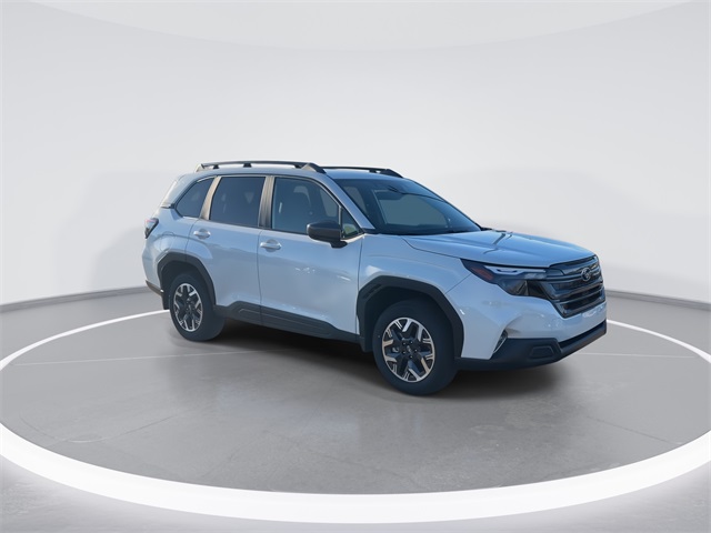 Capital Subaru of Greensboro is proud to present you with another True Market New Subaru. This 2026 Subaru Forester Premium is loaded with the following Factory Options: Power Rear Gate and Blind Spot Detection with Rear Cross Traffic Alert, 4-Wheel Disc Brakes, 6 Speakers, ABS brakes, Air Conditioning, All-Weather Floor Liners, Alloy wheels, AM/FM radio: SiriusXM with 360L, Anti-whiplash front head restraints, Auto High-beam Headlights, Auto-Dimming Mirror with Compass and HomeLink, Automatic temperature control, Brake assist, Bumpers: body-color, Driver door bin, Driver vanity mirror, Dual front impact airbags, Dual front side impact airbags, Electronic Stability Control, Emergency communication system: MySubaru Companion (5-years free), Exterior Parking Camera Rear, Four wheel independent suspension, Front anti-roll bar, Front Bucket Seats, Front Center Armrest, Front dual zone A/C, Front fog lights, Front reading lights, Fully automatic headlights, Heated door mirrors, Heated Front Bucket Seats, Heated front seats, Illuminated entry, Knee airbag, Leather steering wheel, LED Upgrade, Low tire pressure warning, Occupant sensing airbag, Outside temperature display, Overhead airbag, Overhead console, Panic alarm, Passenger door bin, Passenger vanity mirror, Power door mirrors, Power driver seat, Power moonroof: Panoramic, Power steering, Power windows, Premium Textured Cloth Upholstery, Radio data system, Radio: Subaru 11.6" Multimedia Plus System, Rear anti-roll bar, Rear seat center armrest, Rear window defroster, Rear window wiper, Remote keyless entry, Security system, Speed control, Speed-sensing steering, Splash Guards, Split folding rear seat, Spoiler, Steering wheel mounted audio controls, Tachometer, Telescoping steering wheel, Tilt steering wheel, Traction control, Trip computer, Variably intermittent wipers, and Wheels: 17" x 7.0 J Dark Metallic Aluminum-Alloy. Crystal White Pearl 2026 Subaru Forester Premium AWD Lineartronic CVT 2.5L 4-Cylinder DOHC 16V. Recent Arrival! 26/33 City/Highway MPG.
