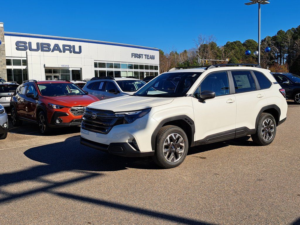 Crystal White Pearl 2026 Subaru Forester Premium AWD Lineartronic CVT 2.5L 4-Cylinder DOHC 16V. 26/33 City/Highway MPG.