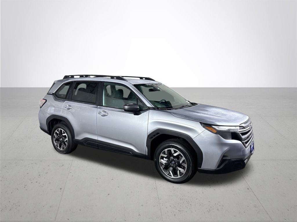 New 2026 Subaru Forester Premium for sale in Vancouver. Features a 2.5L 4-Cylinder DOHC 16V engine and all-wheel drive. The vehicle offers a comfortable interior with Premium Textured Cloth Upholstery, heated front seats, and a panoramic power moonroof. Safety features include Blind-Spot Detection, Emergency Lane Keep Assist, and Automatic Emergency Steering. The Forester is equipped with the Subaru 11.6'' Multimedia Plus System, exterior and interior cameras, and a SiriusXM radio. This new Forester is available with a dealer discount and no sales tax to Oregon residents.