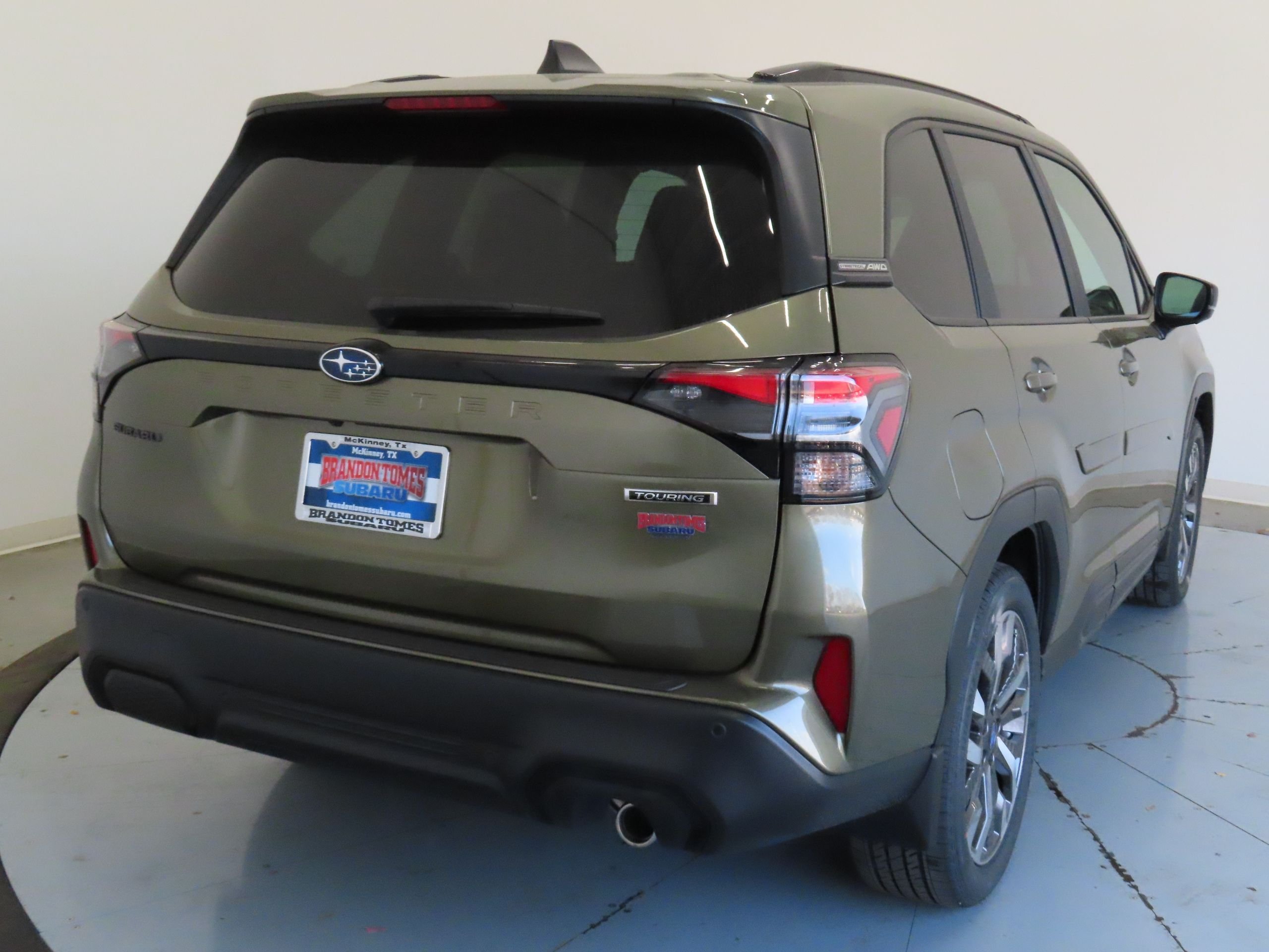 Green Metallic 2026 Subaru Forester Touring AWD Lineartronic CVT 2.5L 4-Cylinder DOHC 16V Standard Model, 11 Speakers, 4-Wheel Disc Brakes, ABS brakes, Air Conditioning, Alloy wheels, AM/FM radio: SiriusXM with 360L, Anti-whiplash front head restraints, Auto High-beam Headlights, Auto-Dimming Exterior Mirror with Approach Light, Automatic temperature control, Brake assist, Bumpers: body-color, Cargo Tray, Driver door bin, Driver vanity mirror, Dual front impact airbags, Dual front side impact airbags, Electronic Stability Control, Emergency communication system: MySubaru Companion (5-years free), Exterior Parking Camera Rear, Four wheel independent suspension, Front anti-roll bar, Front Bucket Seats, Front Center Armrest, Front dual zone A/C, Front fog lights, Front reading lights, Fully automatic headlights, harman/kardon Speakers, Heads-Up Display, Heated and Ventilated Front Bucket Seats, Heated door mirrors, Heated front seats, Heated rear seats, Heated steering wheel, HVAC memory, Illuminated entry, Knee airbag, Leather Shift Knob, Leather steering wheel, LED Upgrade, Low tire pressure warning, Memory seat, Navigation System, Occupant sensing airbag, Outside temperature display, Overhead airbag, Overhead console, Panic alarm, Passenger door bin, Passenger vanity mirror, Perforated Leather-Trimmed Upholstery, Power door mirrors, Power driver seat, Power Liftgate, Power moonroof: Panoramic, Power passenger seat, Power steering, Power windows, Radio data system, Radio: Subaru 11.6" Multimedia Navigation System, Rain sensing wipers, Rear anti-roll bar, Rear Bumper Cover, Rear seat center armrest, Rear window defroster, Rear window wiper, Remote keyless entry, Security system, Speed control, Speed-sensing steering, Splash Guards, Split folding rear seat, Spoiler, Steering wheel mounted audio controls, Tachometer, Telescoping steering wheel, Tilt steering wheel.