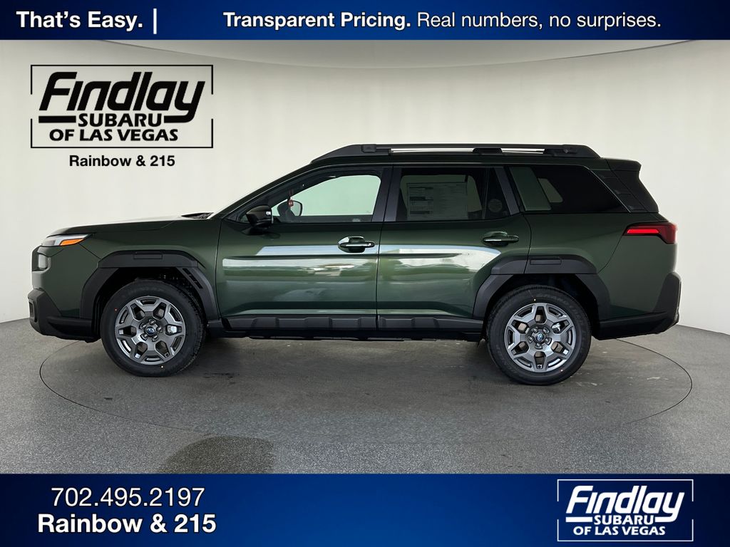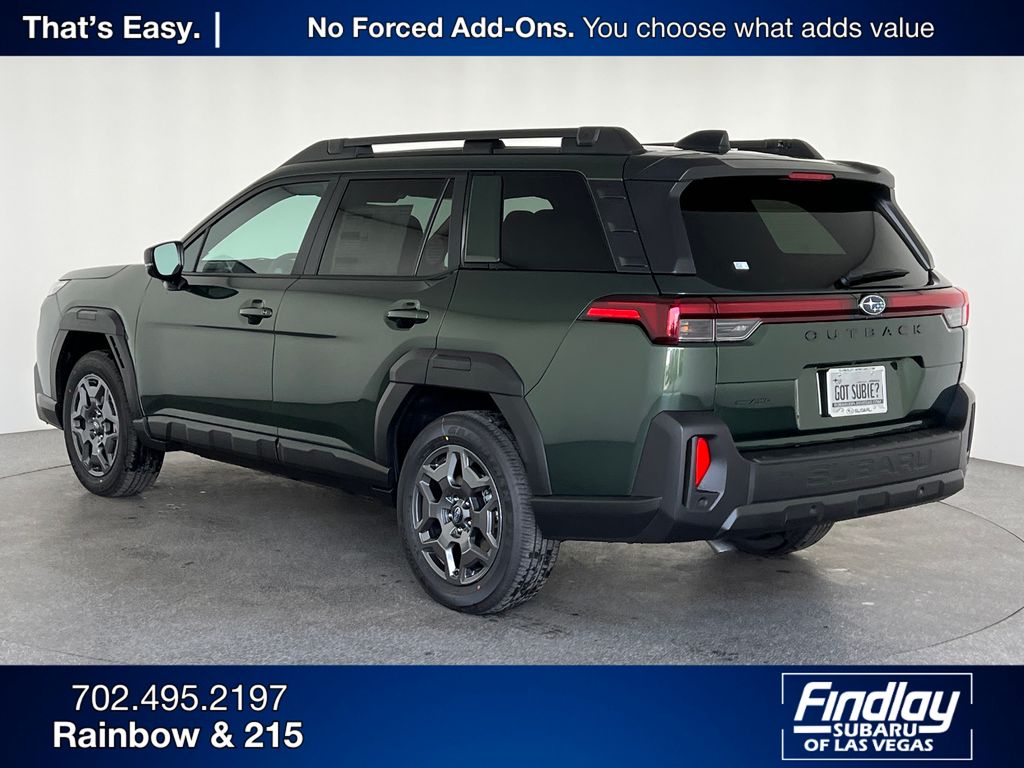 Discover the exceptional 2026 Subaru Outback Premium, a remarkable blend of rugged capability and refined sophistication. This stunning Green Outback, with just 4 miles on the odometer, is a true standout in its class. Boasting a commanding 2.5L 4-Cylinder DOHC 16V engine paired with a seamless CVT Lineartronic transmission and Subaru's renowned Symmetrical All-Wheel Drive system, the Outback Premium delivers an exceptional driving experience. With an impressive 25 city and 31 highway MPG, this Outback strikes the perfect balance between power and efficiency. Elevate your adventures with the Outback Premium's impressive array of premium features, including the cutting-edge Subaru 12.1" Multimedia System with Navigation, a power moonroof, and a heated steering wheel. Stay connected and entertained with the Wireless Charger and the 6-speaker audio system with SiriusXM and 360L capabilities. Comfort and convenience are paramount in the Outback Premium. Dual-zone automatic climate control, a power driver's seat, and a rear window defroster ensure a pleasant driving experience, no matter the weather. The Blind Spot Warning system and Rear Camera provide added peace of mind, while the Power Liftgate and All-Weather Floor Liners make loading and unloading a breeze. Designed to tackle any terrain, the Outback Premium's four-wheel independent suspension and speed-sensing steering deliver a smooth and responsive ride, whether you're navigating city streets or exploring the great outdoors. The 18-inch aluminum-alloy wheels and Variably Intermittent Wipers add a touch of style and functionality to this exceptional vehicle. Subaru of Las Vegas offers a stress-free car buying experience with transparent pricing, no unwanted add-ons, and a dedicated Purchase Advisor to guide you from start to finish. Choose from hundreds of new and pre-owned Subaru models backed by our commitment to honesty, respect, and customer care.