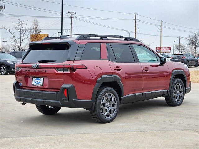 Crimson Red Pearl 2026 Subaru Outback Premium AWD CVT Lineartronic 2.5L 4-Cylinder DOHC 16V Aero Crossbar Set, Auto-Dimming Mirror with Compass and HomeLink, Illuminated Side Sill Plates, LED Upgrade, Navigation and Heated Steering Wheel and Moonroof, Partial Heated Steering Wheel, Power Moonroof, Radio: Subaru 12.1" Multimedia System with Navigation, Rain Sensor Windshield Wipers, Rear Bumper Cover, Splash Guards, USB Charging Cable Set, Wireless Charger. Family owned since 1924! Recent Arrival! 25/31 City/Highway MPG