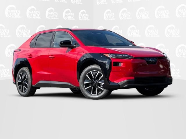 Red 2026 Subaru Solterra Premium AWD 1-Speed Automatic Electric Motor. 131/109 City/Highway MPG.