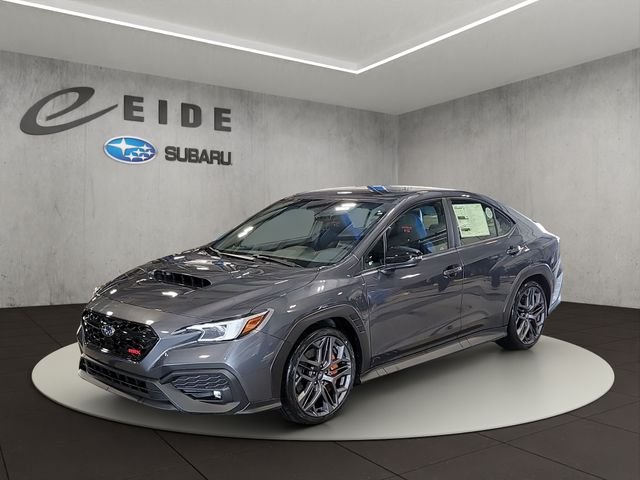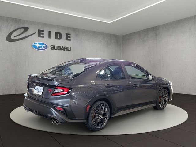The 2026 Subaru WRX tS features a 2.4L DOHC Intercooled Turbocharged engine with a 6-speed manual transmission and full-time all-wheel drive. This sedan offers a blend of performance and comfort, including heated front bucket seats, a sport leather steering wheel, and advanced safety features. The Magnetite Gray Metallic exterior is complemented by a black interior, and the vehicle is equipped with technology like EyeSight Advanced Adaptive Cruise Control and a 6-speaker audio system.