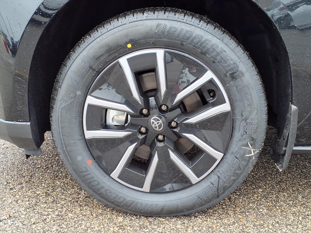 The 2026 Toyota bZ XLE features a Midnight Black Metallic exterior and a black interior. It is equipped with a dual electric motor system and all-wheel drive. The vehicle offers a comfortable and technologically advanced driving experience, with features like a panoramic fixed-glass roof, dual zone automatic climate control, and a state-of-the-art audio multimedia system. Safety is prioritized with Toyota Safety Sense 3.0, including Pre-Collision System with Pedestrian Detection, Lane Departure Alert with Steering Assist, and Full-Speed Range Dynamic Radar Cruise Control.