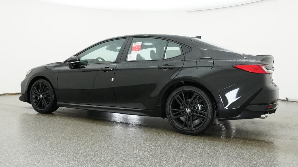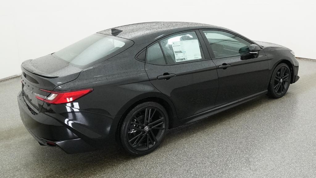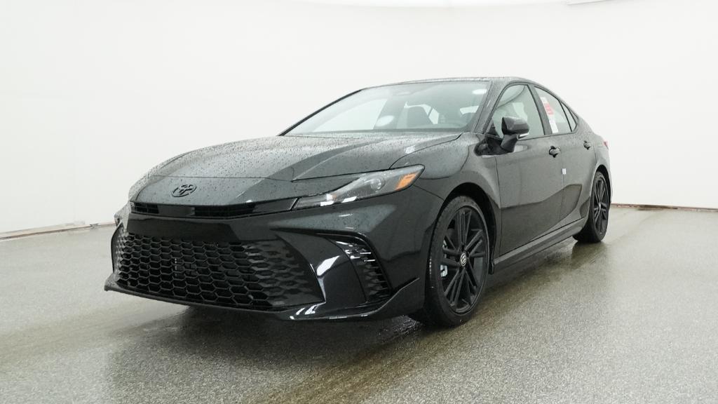 The 2026 Toyota Camry Nightshade features a 2.5L 4-Cyl. Gas/Electric Hybrid engine and a front-wheel drive system. The vehicle is equipped with a range of technology and safety features, including an 8-in. Toyota Audio Multimedia touchscreen, dual zone automatic climate control, and Toyota Safety Sense 3.0. The exterior is finished in Midnight Black Metallic, while the interior is black. This Camry is designed for efficiency and comfort, with a focus on driver assistance and peace of mind for owners.