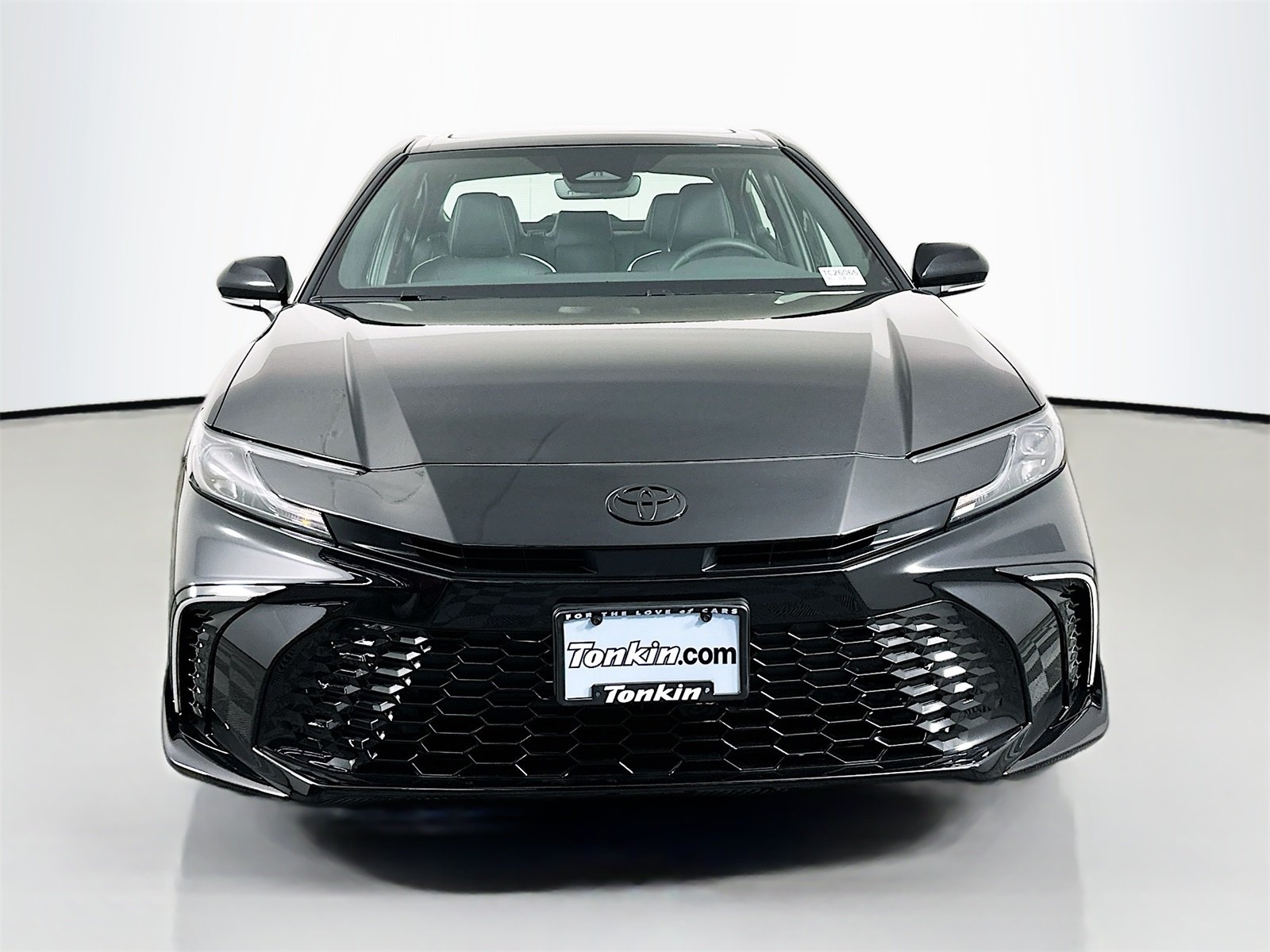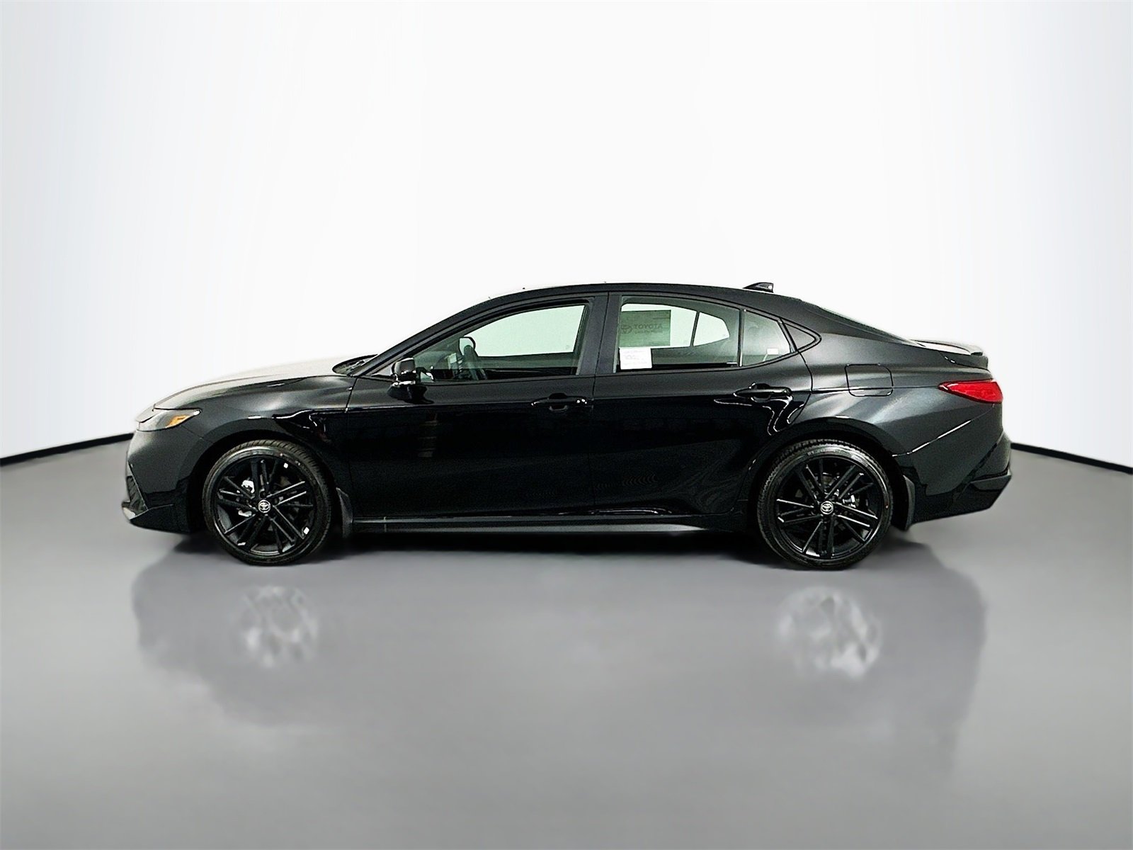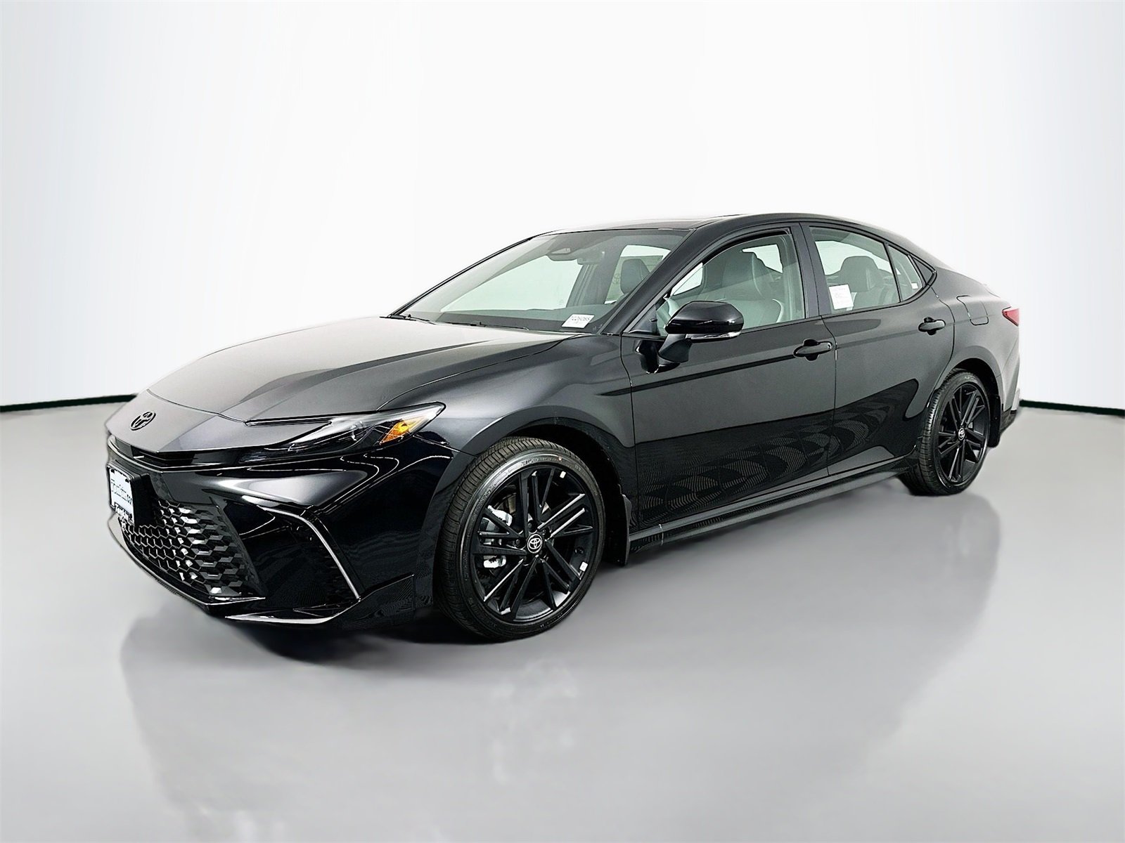The 2026 Toyota Camry Nightshade AWD in Midnight Black Metallic features a 2.5L 4-Cylinder Gas/Electric Hybrid engine and all-wheel drive. This new Camry offers a comfortable black interior and advanced technology, including an 8-in. Toyota Audio Multimedia touchscreen, wireless Apple CarPlay and Android Auto compatibility, and dual zone automatic climate control. Safety features include Toyota Safety Sense 3.0, blind spot monitor, and a suite of driver assist systems. The vehicle is equipped with heated front seats, a power tilt/slide moonroof, and a heated leather steering wheel, making it a blend of style, comfort, and efficiency.