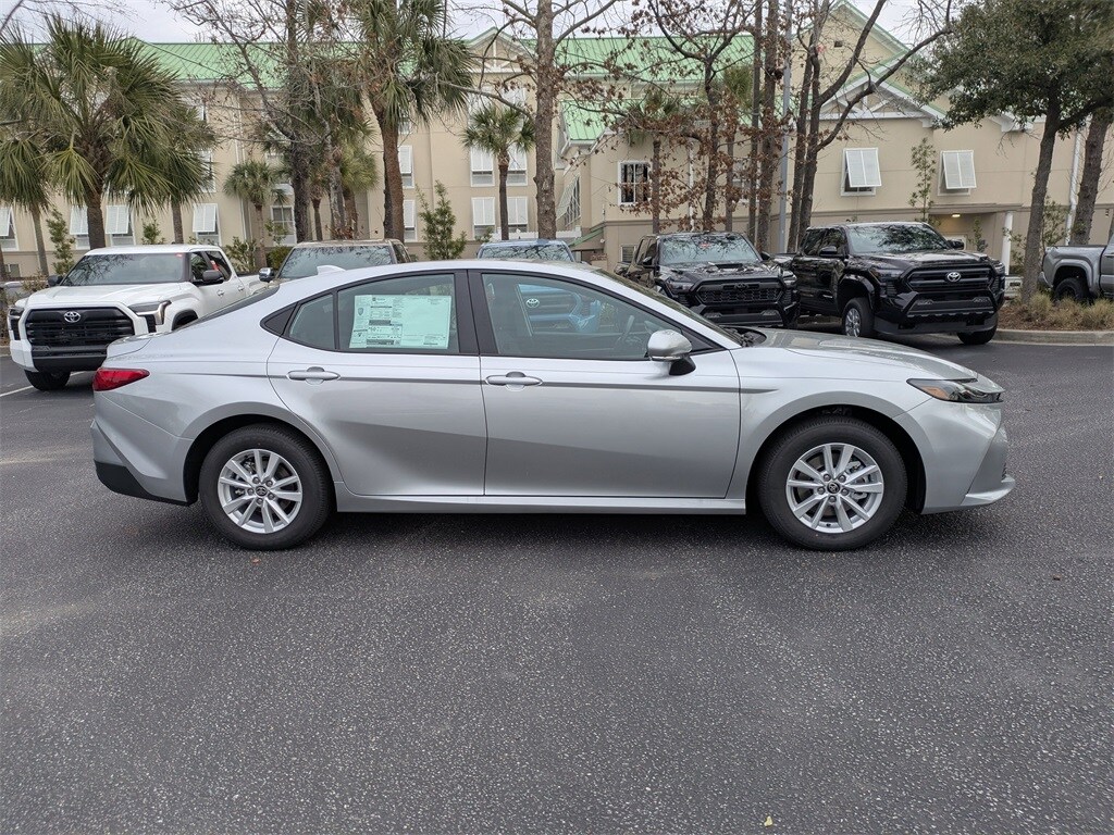 The 2026 Toyota Camry LE Sedan AWD Hybrid is on the lot at Fred Anderson Toyota of Charleston. This new Camry features a 2.5-liter, 4-cylinder DOHC 16-valve, Variable Valve Timing-intelligence (VVT-i) engine with a permanent magnet motor and rear motor, offering 184 hp and 163 lb.-ft. of torque. The vehicle is equipped with a continuously variable automatic transmission, all-wheel drive, and a battery warranty of 120 months / 150,000 miles. The interior features a black fabric, 6-speaker audio system, 8-in. Toyota Audio Multimedia touchscreen, dual zone automatic climate control, and a range of driver assist features. The exterior is Celestial Silver Metallic.