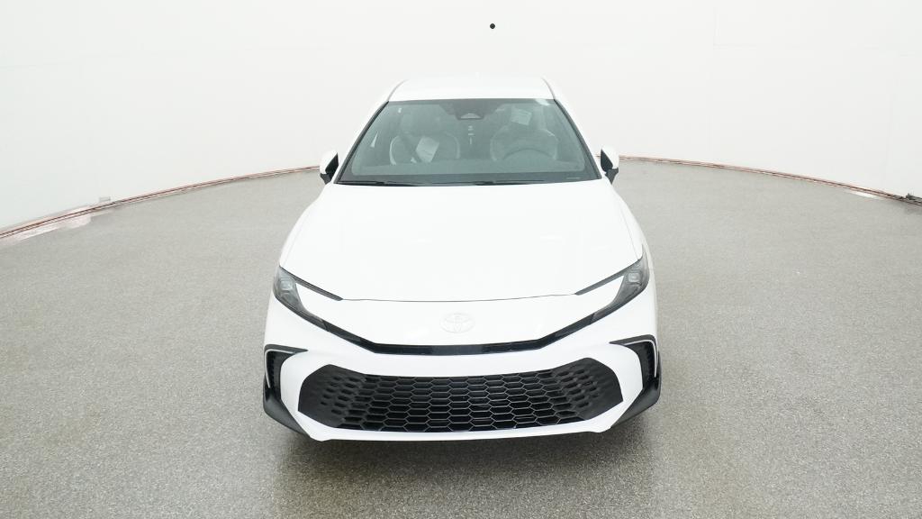The 2026 Toyota Camry SE features a 2.5L 4-Cylinder Gas/Electric Hybrid engine and a front-wheel drive system. It comes with a range of technology and safety features, including the Electronically controlled Continuously Variable Transmission, Toyota Safety Sense 3.0, and an 8-in. Toyota Audio Multimedia touchscreen. The interior is designed for comfort with dual zone automatic climate control, an 8-way power-adjustable front driver's seat, and SofTex- and fabric-trimmed front seats. The exterior is sport-inspired with black air curtains, a black sport mesh front grille, and 18-in. multi-spoke black-finished alloy wheels.