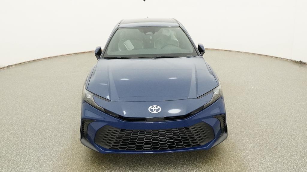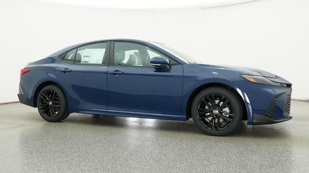The 2026 Toyota Camry SE features a 2.5L 4-Cyl. Gas/Electric Hybrid engine and a front-wheel drive system. It comes with a range of technology and safety features, including the Electronically controlled Continuously Variable Transmission, Toyota Safety Sense 3.0, and an 8-in. Toyota Audio Multimedia touchscreen. The interior is designed for comfort with dual zone automatic climate control, a leather-trimmed tilt/telescopic steering wheel, and SofTex- and fabric-trimmed front seats. The exterior is sport-inspired with black air curtains, a black sport mesh front grille, and 18-in. multi-spoke black-finished alloy wheels.