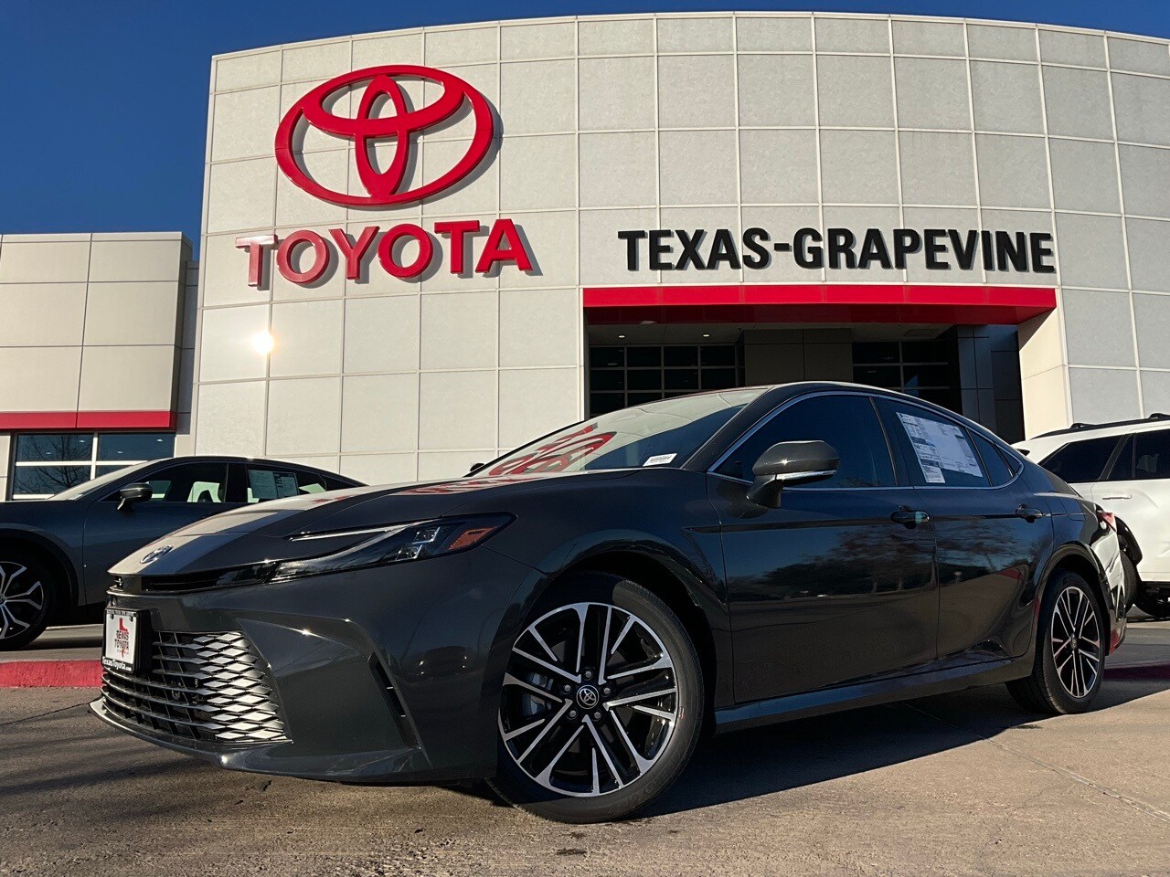2026 Toyota Camry 4D Sedan Underground. Backup Camera, LED Accent Lighting, Night Vision Auto-Dimming Mirror, Wheels, ACROSS FROM DFW AIRPORT, PRE COLLISION SYSTEM WITH PEDESTRIAN DETECTION, LANE DEPARTURE ALERT WITH SWAY WARNING, AUTO HIGH BEAMS, DYNAMIC RADAR CRUISE CONTROL, Push Button Start, Apple CarPlay Compatible, Android Auto, Black Leather. 48/47 City/Highway MPG.