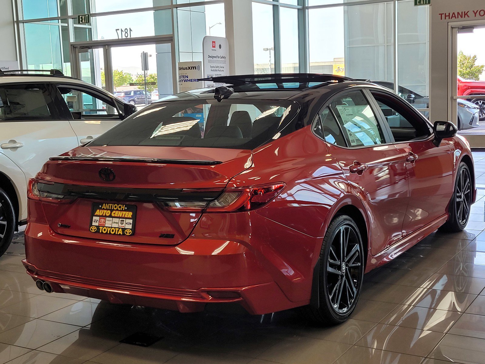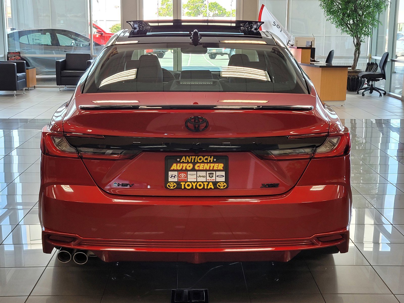 The 2026 Toyota Camry XSE offers a blend of efficiency and style, featuring a 2.5L 4-Cylinder Gas/Electric Hybrid engine and a Supersonic Red exterior with Midnight Black Metallic roof. The interior is designed for comfort, with black seating and a range of advanced technology and safety features. This vehicle is in stock and available at the Antioch Toyota location.