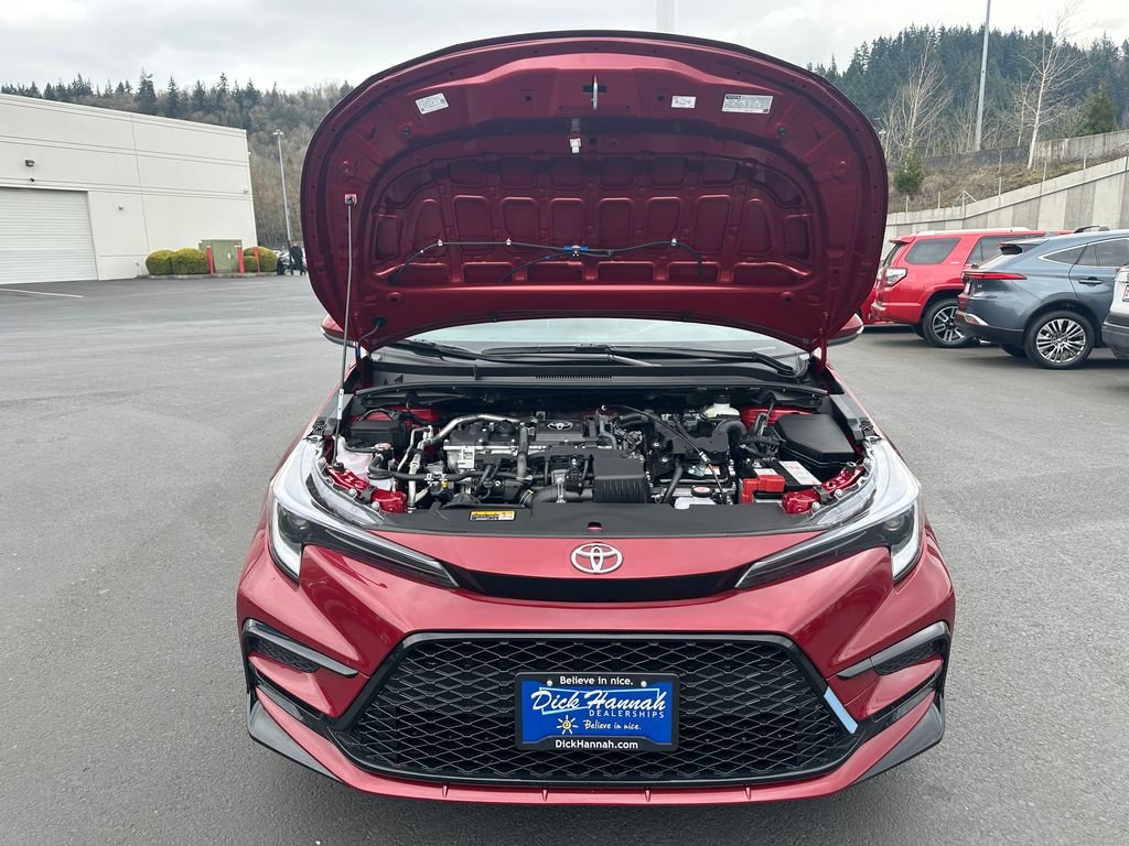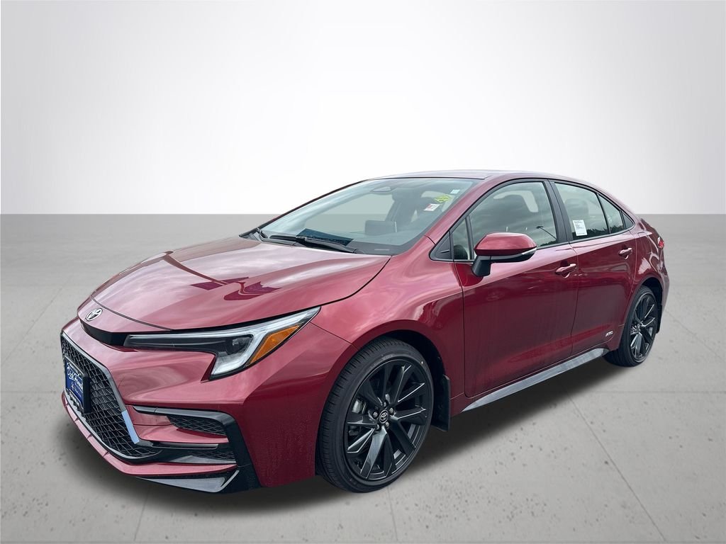 Ruby Flare Pearl 2026 Toyota Corolla Hybrid SE AWD eCVT 1.8L DOHC 16V VVT, Black/Red Fabric Seat Trim. 47/41 City/Highway MPG Comes with complimentary Toyota Care factory prepaid maintenance for 2 years or 25,000 miles! Available now. Price after any applicable factory rebates.