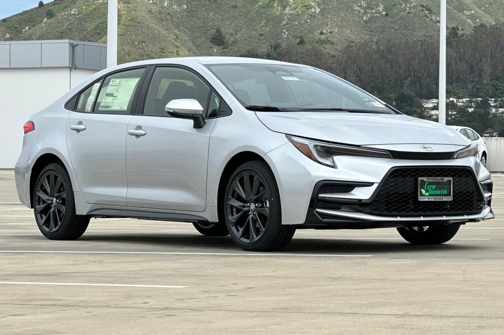 The 2026 Toyota Corolla Hybrid SE offers a blend of efficiency and style, with a 1.8L 4-cylinder hybrid engine and a host of advanced safety features. Enjoy a comfortable interior with sport seats, a digital gauge cluster, and a suite of connectivity options including Apple CarPlay and Android Auto. The exterior features a silver metallic finish, LED lighting, and a sporty design.