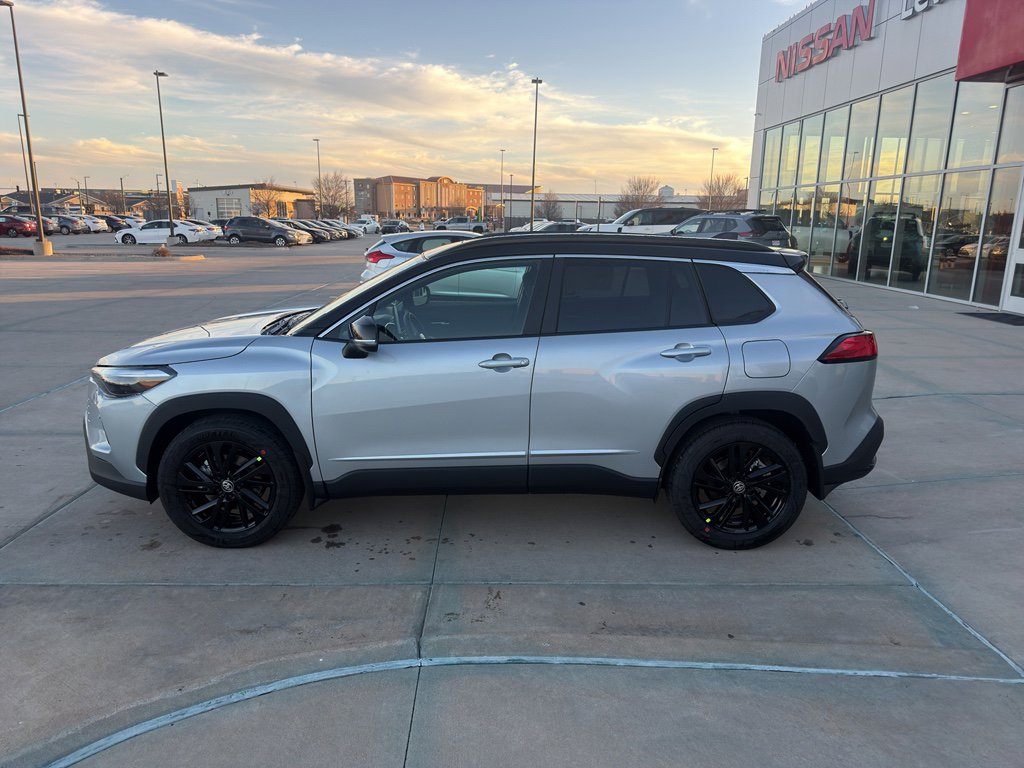 The 2026 Toyota Corolla Cross Hybrid XSE AWD is currently in transit to Lewis Toyota of Garden City. This new SUV features a Sonic Silver exterior with a Jet Black roof and a Black interior. It is designed for efficiency and versatility, offering a comfortable ride, advanced safety features, and a spacious cargo area. The vehicle is powered by a hybrid 2.0-liter 4-cylinder engine and comes equipped with all-weather floor liners, a cargo tray, and a range of convenience and premium audio features.