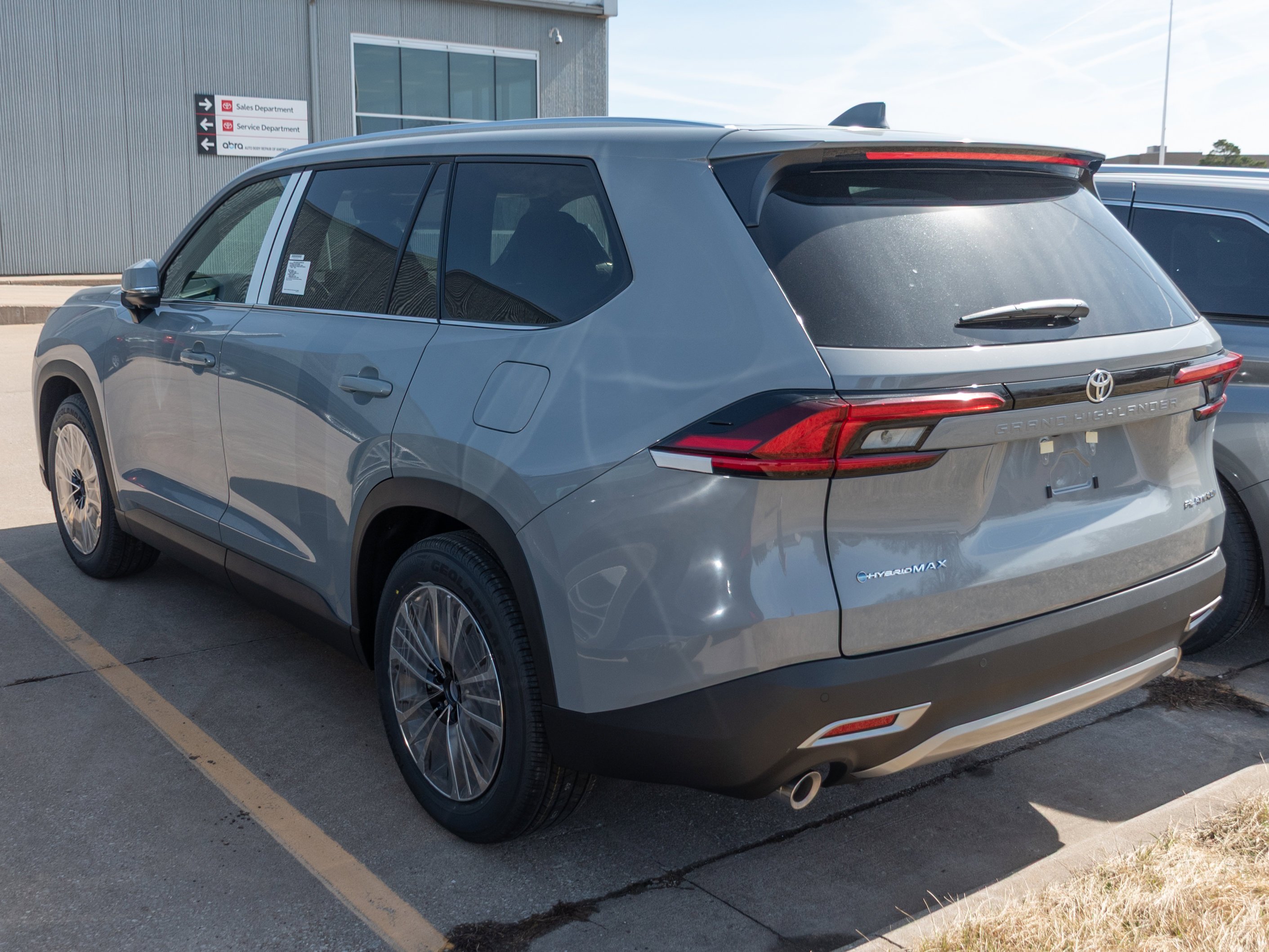 The 2026 Toyota Grand Highlander Hybrid MAX Platinum in Cement features a 2.4-liter 4-cylinder turbocharged Hybrid MAX engine with All-Wheel Drive. This new model offers a spacious interior with seating for seven, advanced safety features, and a suite of technology including the Toyota Audio Multimedia touchscreen, Head-Up Display, and Dynamic Radar Cruise Control. The vehicle is equipped with premium audio, heated and ventilated seats, and a panoramic power liftgate. The Grand Highlander Hybrid MAX Platinum is designed for comfort, efficiency, and capability, making it a versatile choice for families and adventurers.
