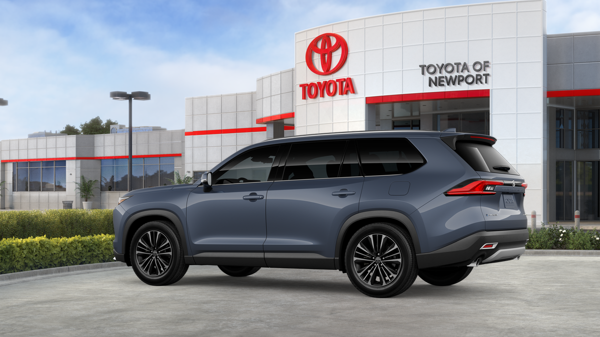 The 2026 Toyota Grand Highlander Hybrid MAX Platinum in Storm Cloud features a 2.4-liter 4-cylinder turbocharged Hybrid MAX engine with all-wheel drive. This vehicle offers a spacious interior with seating for seven, advanced safety features, and a suite of technology including the Toyota Audio Multimedia touchscreen, wireless Apple CarPlay and Android Auto compatibility, and a panoramic View Monitor. The exterior is finished in Storm Cloud, complemented by a range of premium features and options designed for comfort, convenience, and driver assistance.
