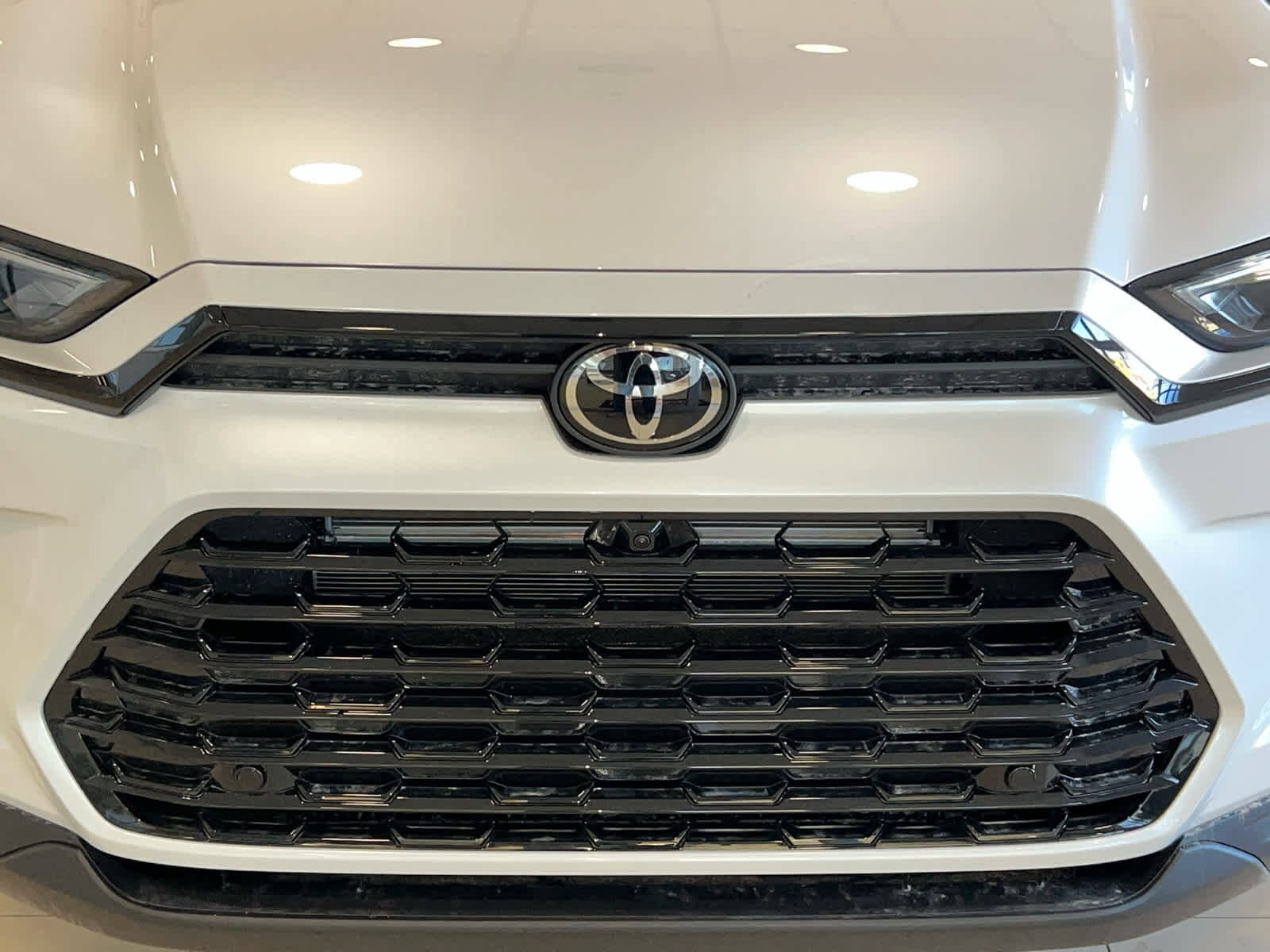 The 2026 Toyota Grand Highlander Hybrid Nightshade is a new hybrid SUV in transit at Kokomo Toyota. It features a 2.5-liter hybrid powertrain with 245 combined net hp and 175 lb.-ft. of torque, offering a combined fuel economy of 34 mpg. The vehicle is equipped with a range of comfort and safety features, including a panoramic moonroof, heated and ventilated front seats, a digital key system, and Toyota's Safety Sense 3.0 suite. The exterior is Wind Chill Pearl, and the interior is Black.
