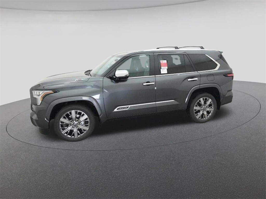 The 2026 Toyota Sequoia Capstone SUV features a hybrid i-FORCE MAX engine with 437 hp and 583 lb.-ft. of torque. This new model offers a premium driving experience with advanced technology, a spacious interior, and a range of comfort features. The exterior is finished in Magnetic Gray Metallic, while the Shale interior provides a warm, natural look. Safety and convenience are prioritized with Toyota Safety Sense 2.5, including Pre-Collision System, Dynamic Radar Cruise Control, and Lane Departure Alert. The vehicle is designed for both comfort and performance, making it an ideal choice for families and adventurers.