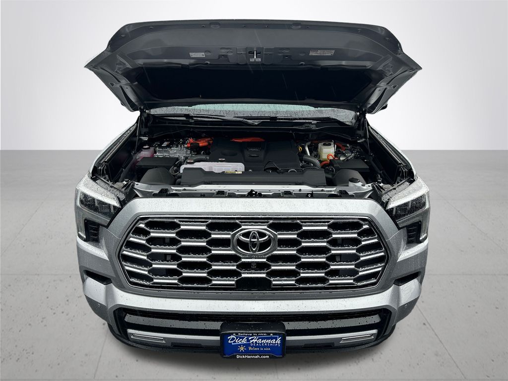 Celestial Silver Metallic 2026 Toyota Sequoia Capstone 4WD 10-Speed Automatic V6 Hybrid, Shale Leather Seat Trim. Comes with complimentary Toyota Care factory prepaid maintenance for 2 years or 25,000 miles! Available now. Price after any applicable factory rebates.
