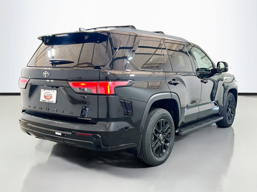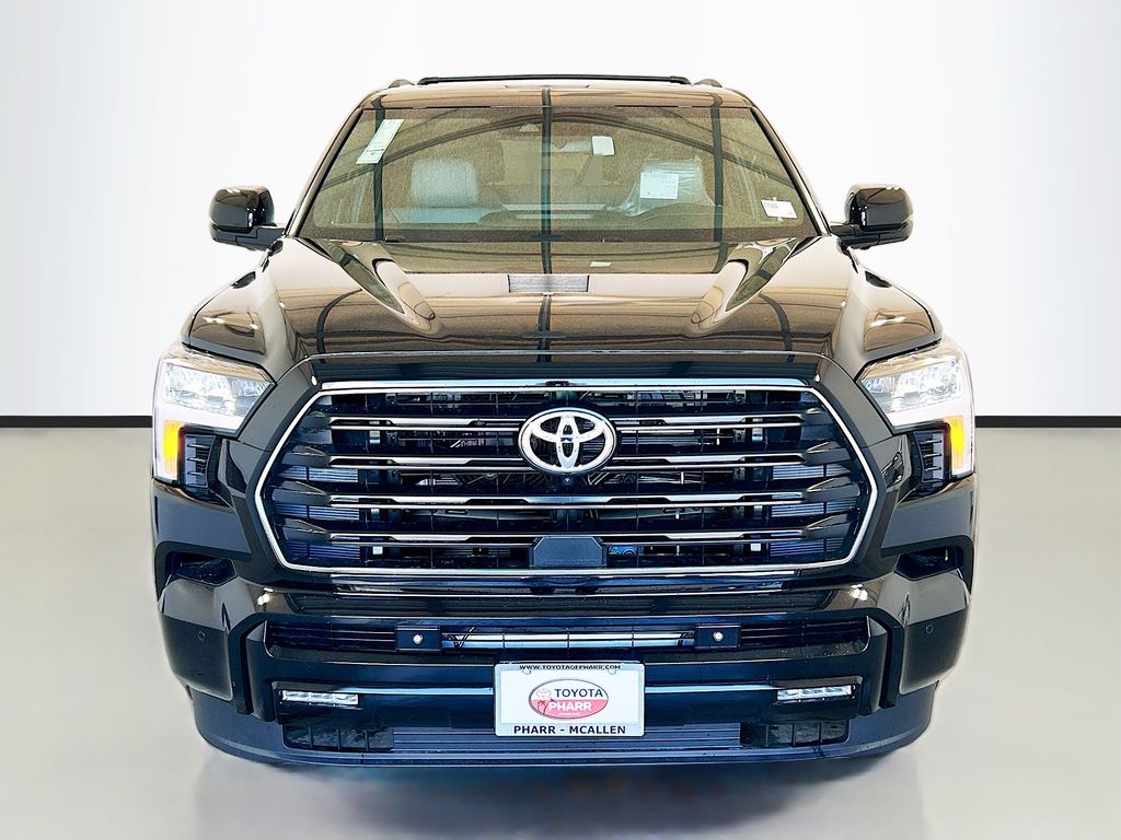 Recent Arrival! 2026 Toyota Sequoia Midnight Black Metallic 4WD Limited 10-Speed Automatic V6 Hybrid V6 Hybrid, 10-Speed Automatic, 4WD, 3rd row seats: split-bench, 4-Wheel Disc Brakes, 4x4 Badge, 8 Speakers, ABS brakes, Air Conditioning, Alloy wheels, AM/FM radio: SiriusXM, Anti-whiplash front head restraints, Apple CarPlay/Android Auto, Auto High-beam Headlights, Auto-dimming door mirrors, Auto-dimming Rear-View mirror, Automatic temperature control, Black Overfenders and Rear Bumper, Brake assist, Bumpers: body-color, Carpet Floor Mats/Carpet Cargo Mat, Delay-off headlights, Driver door bin, Driver vanity mirror, Dual front impact airbags, Dual front side impact airbags, Electronic Stability Control, Emergency communication system: Safety Connect (10-year trial), Exterior Parking Camera Rear, Front anti-roll bar, Front Bucket Seats, Front Center Armrest w/Storage, Front dual zone A/C, Front fog lights, Front reading lights, Front wheel independent suspension, Fully automatic headlights, Garage door transmitter: HomeLink, Gloss Black Door Handles, Gloss Black Mirror Caps, Gloss Black Tailgate Handle, Gloss Black Window Molding, Headlight cleaning, Heated and Ventilated Front Seats, Heated door mirrors, Heated front seats, Heated steering wheel, Illuminated entry, JBL Premium Audio, Knee airbag, Leather Seat Trim, Leather Shift Knob, Leather steering wheel, Low tire pressure warning, Memory seat, Navigation system: Drive Connect (1 year trial) includes Cloud Navigation with real time traffic and Google POI, Nightshade Package, Occupant sensing airbag, Outside temperature display, Overhead airbag, Overhead console, Panic alarm, Passenger door bin, Passenger vanity mirror, Power door mirrors, Power driver seat, Power Liftgate, Power moonroof, Power passenger seat, Power steering, Power Tilt/Slide Panoramic Rood with Power Sunshade, Radio: 14" Toyota Audio Multimedia, Rear air conditioning, Rear reading lights, Rear seat center armrest, Rear window defroster, Rear window wiper, Reclining 3rd row seat, Remote keyless entry, Security system, Speed control, Speed-sensing steering, Split folding rear seat, Spoiler, Steering wheel mounted audio controls, Tachometer, Telescoping steering wheel, Tilt steering wheel, Tow Technology Package Without Wireless Trailer Camera System, Traction control, Trailer Backup Guide with Straight Path Assist (SPA), Trip computer, Turn signal indicator mirrors, Variably intermittent wipers, Ventilated front seats.