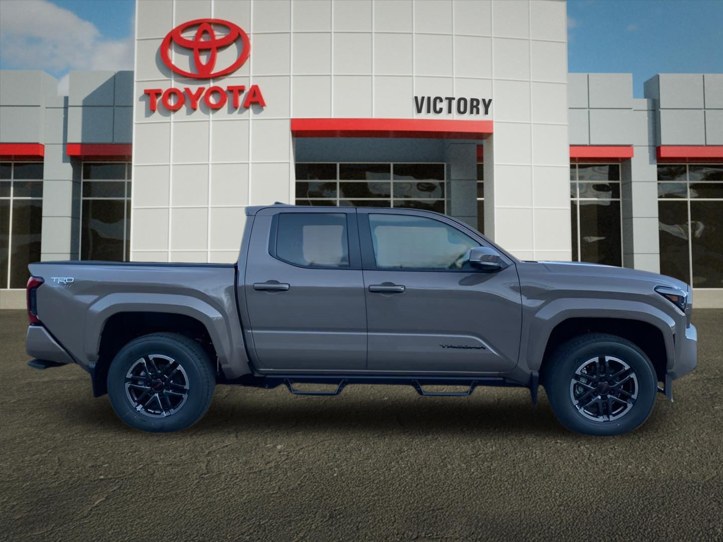 The 2026 Toyota Tacoma TRD Sport Double Cab 4-Wheel Drive features an i-FORCE 2.4L 4-Cyl. Turbo Engine and a 8-speed automatic transmission. This truck offers a stylish and functional design with TRD Sport alloy wheels, LED bed lighting, and a color-keyed rear bumper. The interior includes fabric-trimmed seats, a leather-trimmed steering wheel, and an 8-in. Toyota Audio Multimedia display with wireless Apple CarPlay and Android Auto compatibility. Safety features include the Toyota Safety Sense 3.0 system, Blind Spot Monitor, Rear Cross-Traffic Alert, and a pre-collision system with pedestrian detection. The vehicle is equipped for comfort and convenience with automatic climate control, a power open/close tailgate, and a digital rearview mirror.