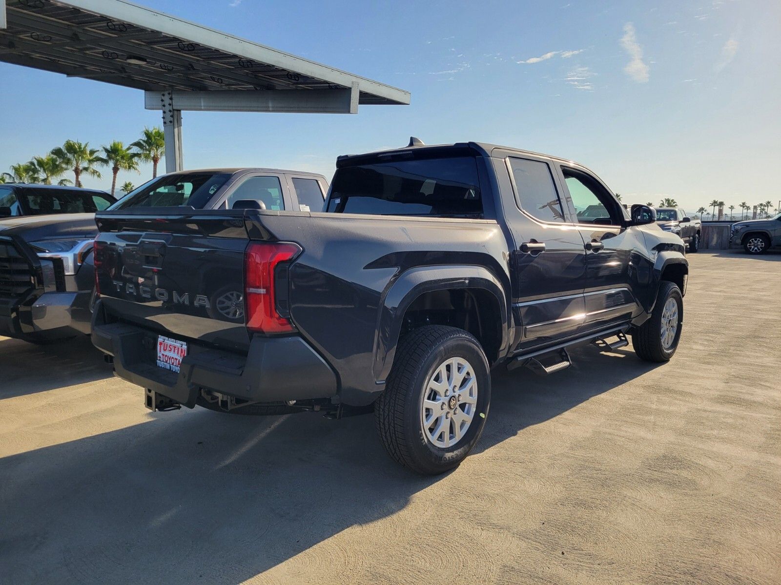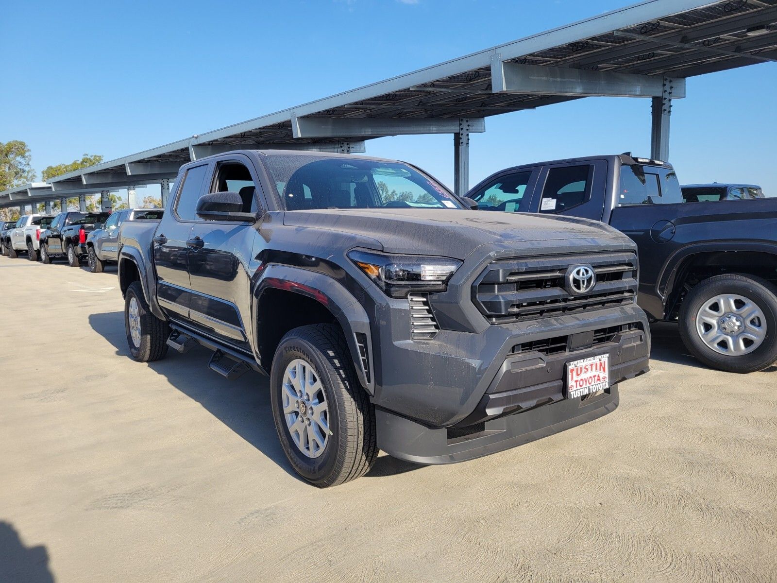 The 2026 Toyota Tacoma SR Double Cab Rear-Wheel Drive is in stock at the Tustin Toyota dealership. It features an i-FORCE 2.4L 4-cylinder turbo engine, rear-wheel drive, and a bold Underground exterior finish. The interior is black and includes a fabric-trimmed design, while the vehicle is equipped with advanced safety features and a range of premium options to enhance your driving experience.
