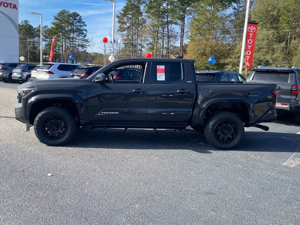 The 2026 Toyota Tacoma SR5 Double Cab 4-Wheel Drive features an i-FORCE 2.4L turbocharged inline-4 engine and a 8-speed automatic transmission. This new Tacoma offers a comfortable interior with fabric-trimmed seats, a power-adjustable lumbar support on the driver's seat, and a range of advanced safety features. The exterior is designed for utility and style with 17-in. alloy wheels, LED lighting, and a TRD Black Alloy Wheel/All-Terrain Tire Combo. This vehicle is engineered for both work and everyday driving, providing flexibility and peace of mind for any journey.