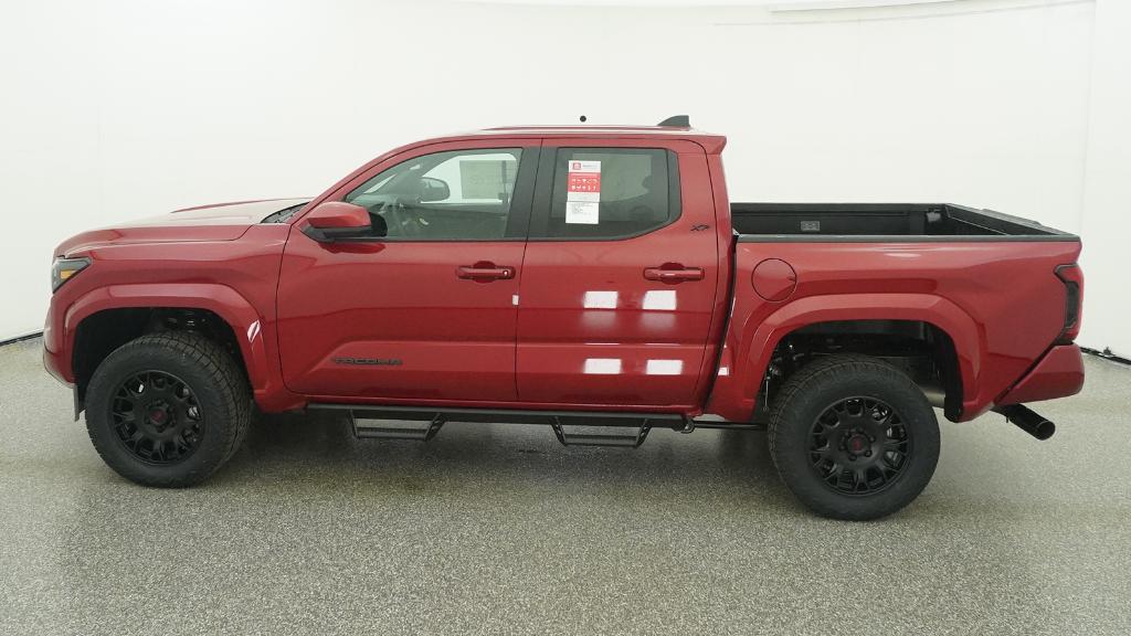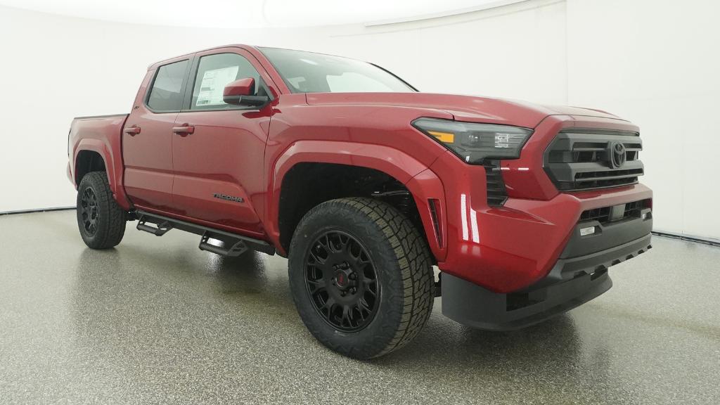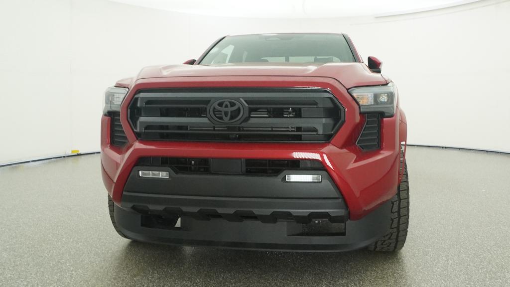 The 2026 Toyota Tacoma SR5 Double Cab 4-Wheel Drive features an i-FORCE 2.4L turbocharged inline-4 engine and a 8-speed automatic transmission. This vehicle offers a comfortable interior with fabric-trimmed seats, a polyurethane manual tilt/telescopic steering wheel, and a 60/40 split folding rear seat. Safety is enhanced with Toyota Safety Sense 3.0, including Pre-Collision System with Pedestrian Detection, Lane Tracing Assist, Full-Speed Range Dynamic Radar Cruise Control, and Road Sign Assist. The exterior is finished in Supersonic Red and includes 17-in. styled alloy wheels, LED bed lighting, and LED headlights with Daytime Running Lights.