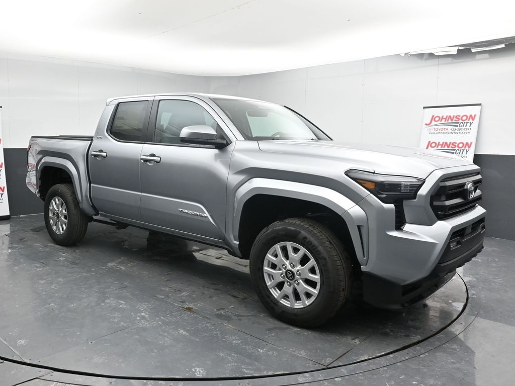 The 2026 Toyota Tacoma SR5 Double Cab 4-Wheel Drive features a Celestial Silver Metallic exterior and a Gray interior. Powered by an i-FORCE 2.4L 4-Cyl. Turbo Engine, this truck offers a comfortable and connected driving experience with advanced safety features and a spacious double cab. Enjoy the convenience of wireless Apple CarPlay and Android Auto, along with a suite of driver assist technologies for added peace of mind on the road.