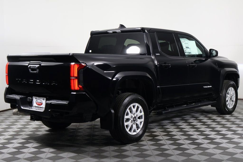 Black 2026 Toyota Tacoma SR5 RWD 8-Speed Automatic 2.4L 4-Cylinder. Recent Arrival! 21/26 City/Highway MPG. Total SRP (aka TSRP) is the Total Suggested Retail Price and DPH references the Delivery Process and Handling fee (if applicable). Neither the dealership nor the website provider is responsible for misprints on prices or equipment. It is the customer’s sole responsibility to verify the accuracy of the prices with the dealer, including the pricing for all added accessories. Advertised service loaners may not be immediately available for demonstration or delivery. See dealer to schedule an appointment. All advertised prices exclude government fees and taxes, finance charges, dealer document processing charge of $85, electronic filing charge and any emission testing charge and Dealer Installed Accessories. All vehicles subject to prior sale. All prices, specifications, and availability subject to change without notice. Certain vehicles listed may be in transit and not available. Images shown are for informational purposes, and may not represent the actual vehicle, or available configurable options. Dealer claims no responsibility for any inaccuracies contained herein. Trade in vehicles subject to visual inspection and confirmation of vehicle history, mileage, and equipment. Trade-in value estimates exclude any reconditioning costs and previous damage. Any amount you owe which is more than the amount allowed on your trade-in will be added to the new amount financed subject to credit approval. All advertised prices expire at midnight on the day of posting. For In-Transit inventory any date of arrival is estimated. Dealer reserves the right to change the date due to conditions beyond our control. Please contact dealer for delivery details.