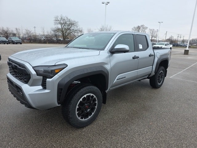 The 2026 Toyota Tacoma TRD Off-Road Double Cab 4-Wheel Drive features a Celestial Silver Metallic exterior and a black interior. Powered by an i-FORCE 2.4L 4-Cyl. Turbo Engine, this Tacoma offers a comfortable and advanced driving experience with features like automatic climate control, a premium audio system, and a suite of driver assistance technologies. The vehicle is designed for both on-road comfort and off-road capability, with a multi-terrain select system, crawl control, and downhill assist control. The TRD Off-Road Premium Package includes alloy wheels, heated and ventilated seats, a leather-trimmed heated steering wheel, and a digital rearview mirror, making it ready for tough jobs and everyday adventures.