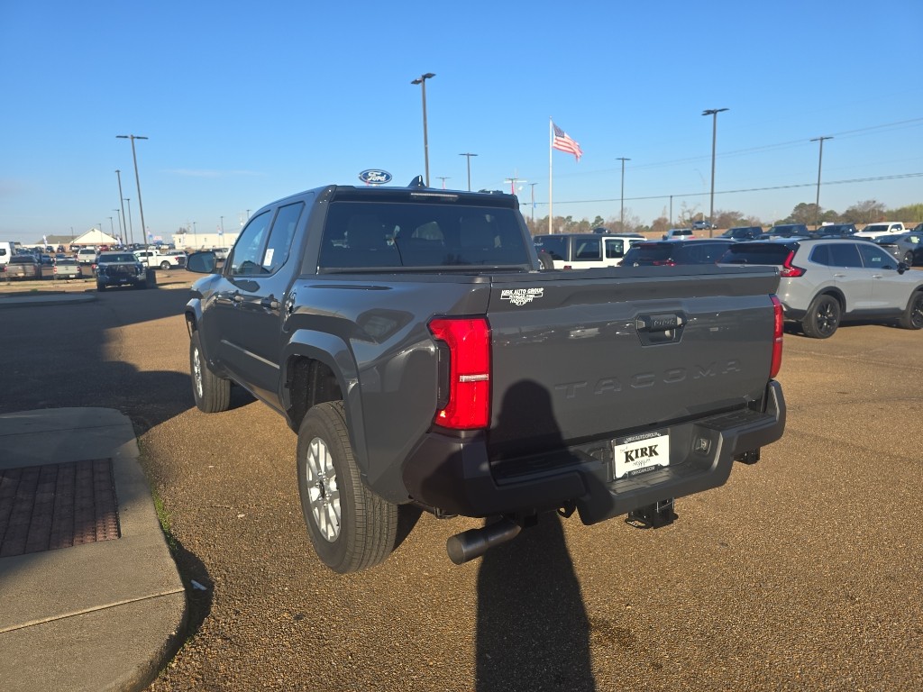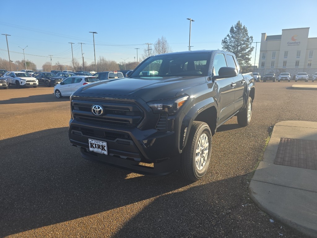 The 2026 Toyota Tacoma SR Double Cab Rear-Wheel Drive is in stock at Kirk Toyota in Grenada, MS. This new Tacoma features an i-FORCE 2.4L turbocharged inline-4 engine, rear-wheel drive, and a range of advanced safety and connectivity features. The Underground exterior is paired with a black interior and a host of premium options for comfort, towing, and bed customization.