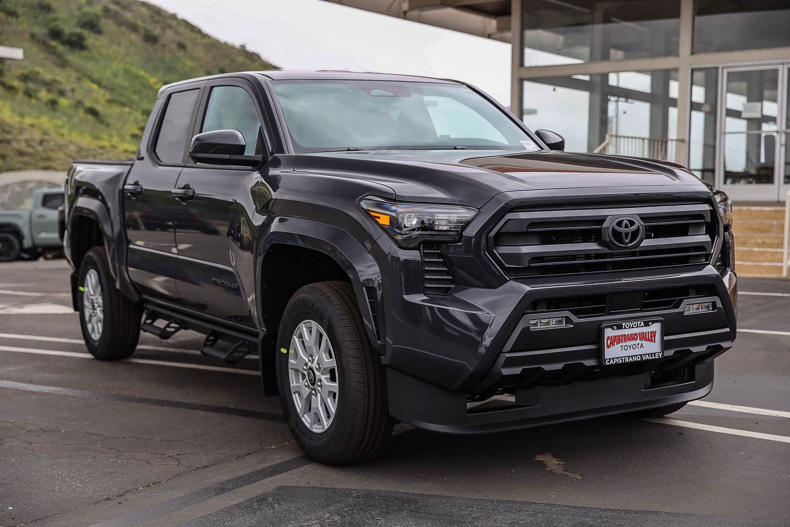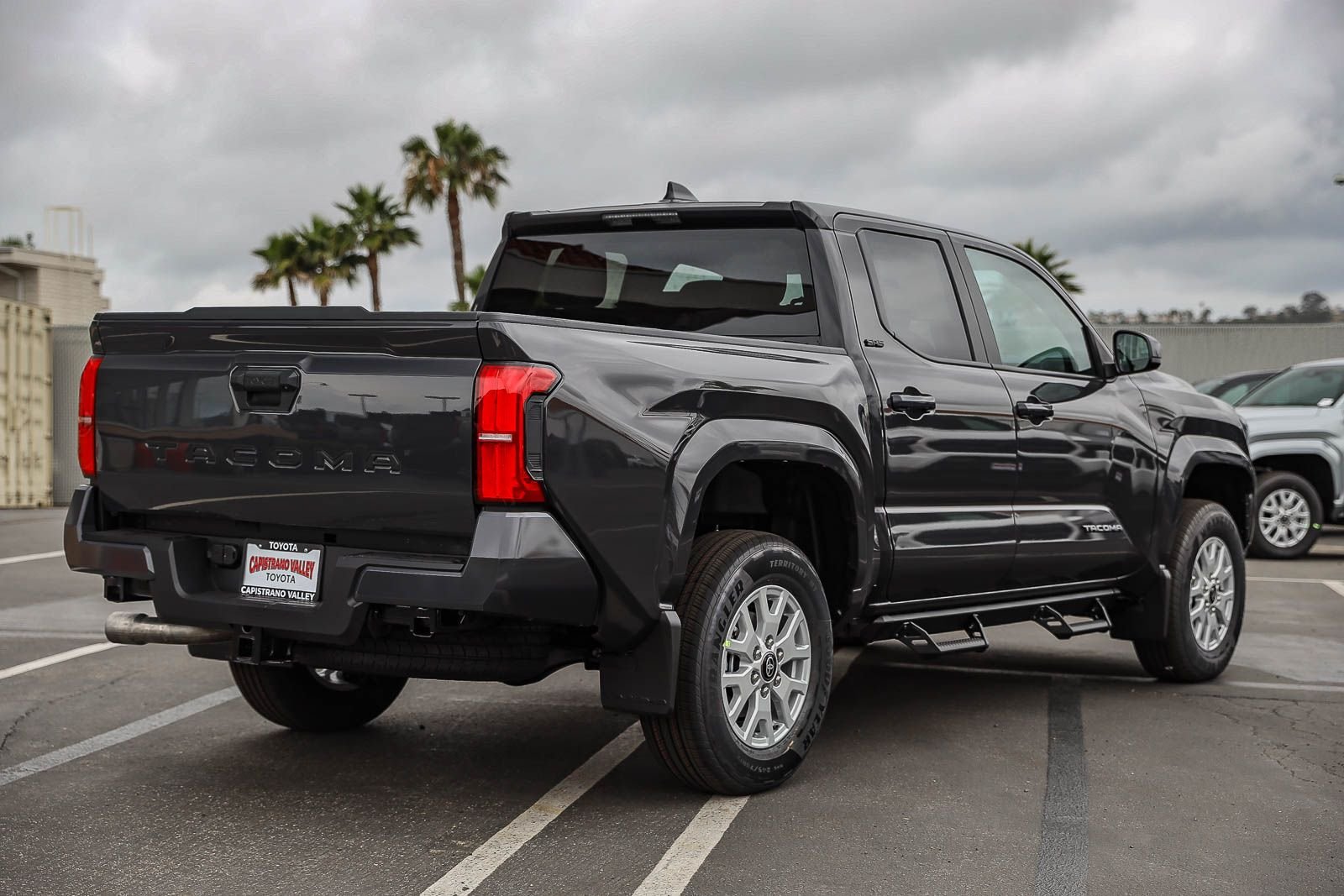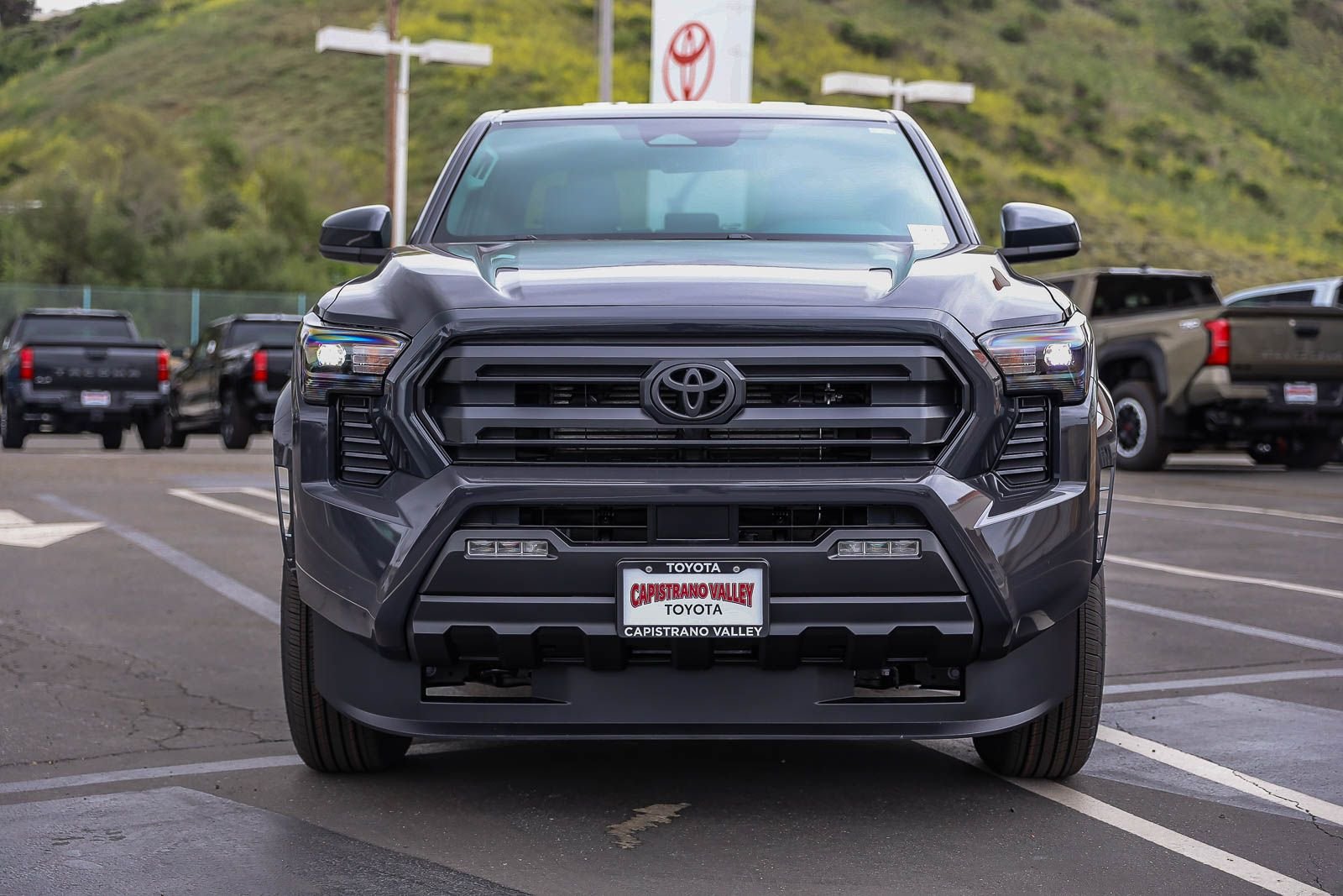 The 2026 Toyota Tacoma SR5 Double Cab Rear-Wheel Drive is in stock at Capistrano Toyota. This new Tacoma features an i-FORCE 2.4L 4-cylinder turbo engine, rear-wheel drive, and a rugged design. The Underground exterior is complemented by a black interior. This Tacoma offers advanced safety features, a comfortable cab, and a versatile bed. Please see toyota.com/connected-services for details on the 8-in. Toyota Audio Multimedia display and Toyota Safety Sense 3.0.