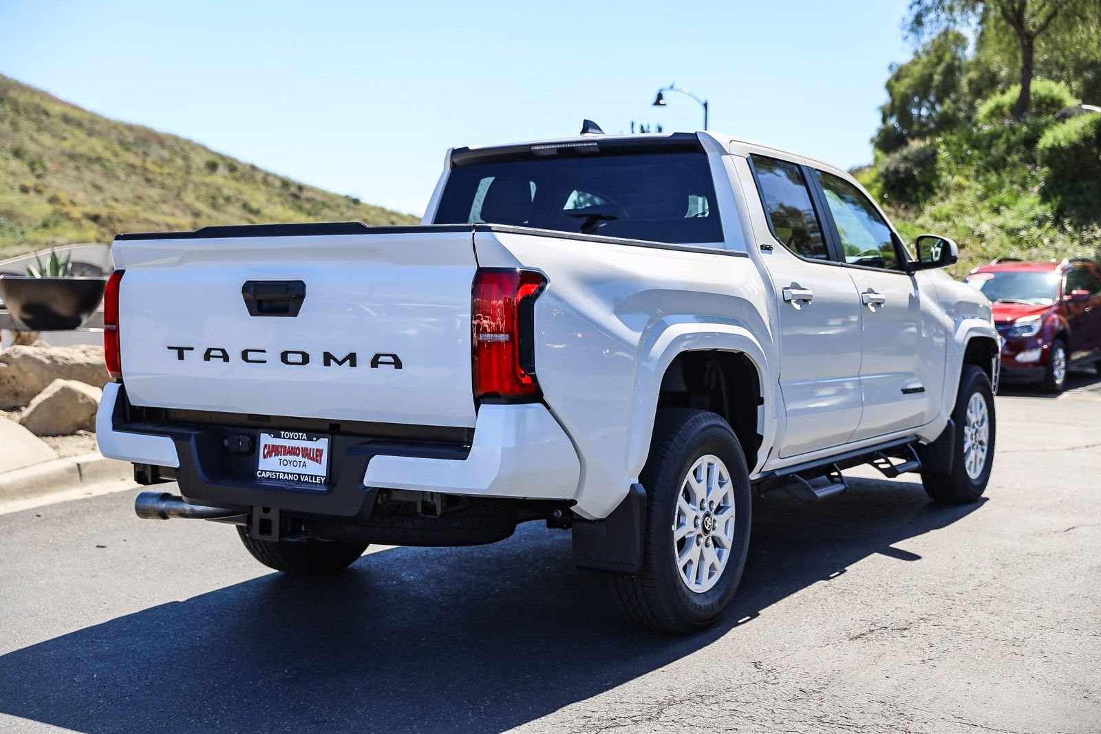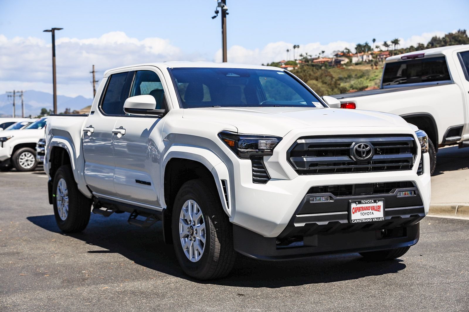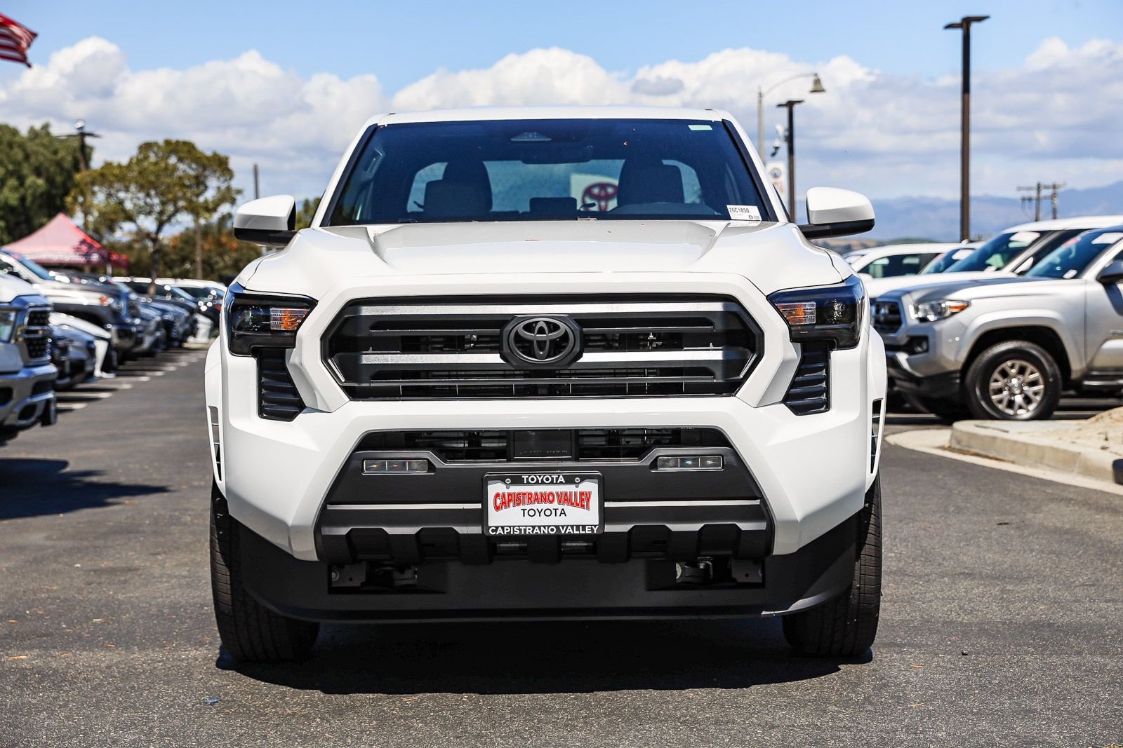 The 2026 Toyota Tacoma SR5 Double Cab Rear-Wheel Drive is in stock at Capistrano Toyota. This new Tacoma features an i-FORCE 2.4L 4-cylinder turbo engine, rear-wheel drive, and a host of advanced safety and convenience features. The Ice Cap exterior is complemented by a gray interior, and the truck is equipped with a range of premium options to enhance your driving experience.