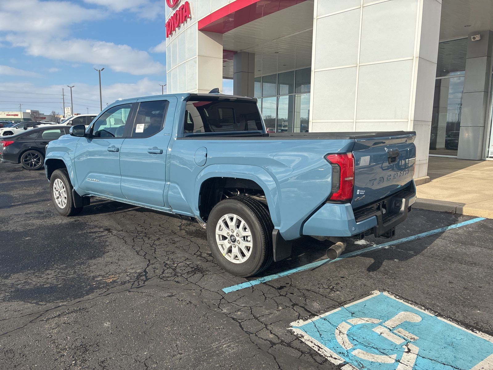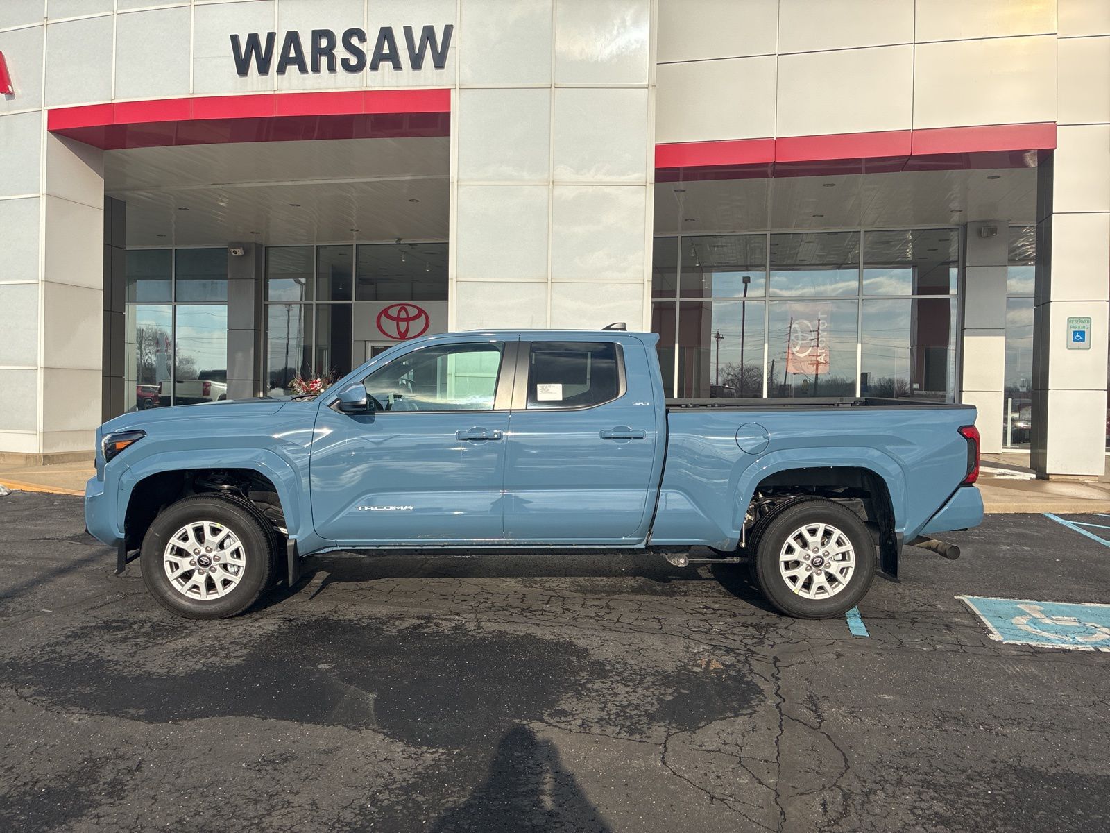 The 2026 Toyota Tacoma SR5 Double Cab 4-Wheel Drive is in stock at Toyota Warsaw. This new Tacoma features the i-FORCE 2.4L turbocharged inline-4 engine, 8-speed automatic transmission, and a range of comfort and safety features. The Heritage Blue exterior is complemented by a black interior. See the dealer for additional details.