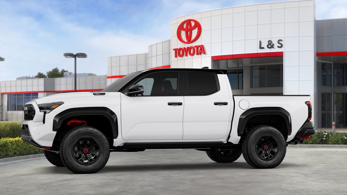 The 2026 Toyota Tacoma i-FORCE MAX TRD Pro 4WD Double Cab features an Ice Cap with Black roof exterior and a Cockpit Red interior. Powered by the i-FORCE MAX 2.4L 4-Cyl. Turbo Hybrid Powertrain, this Tacoma offers a blend of performance and efficiency. With advanced safety features, a comfortable cabin, and a suite of technology, this Tacoma is designed for both work and play.