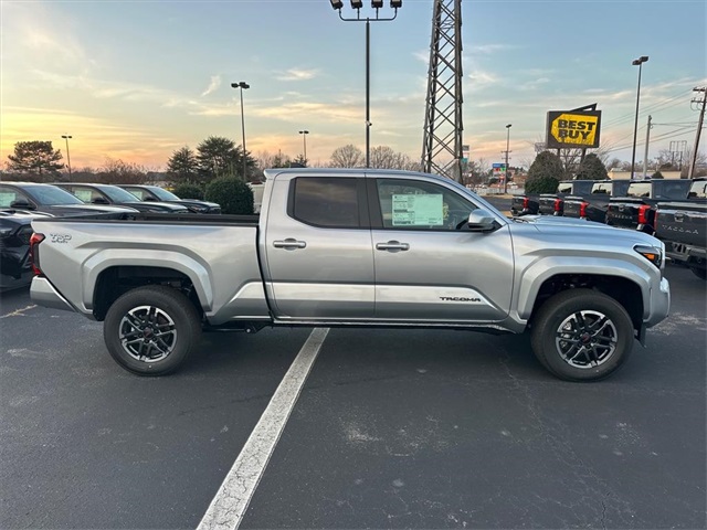 The 2026 Toyota Tacoma TRD Sport Double Cab 4-Wheel Drive features an i-FORCE 2.4L 4-Cyl. Turbo Engine and a 8-speed automatic transmission. This vehicle is designed for both work and play, with a long bed, TRD Sport alloy wheels, and a host of driver assistance features. The interior is comfortable and functional, with fabric-trimmed seats, automatic climate control, and a leather-trimmed steering wheel. Safety is prioritized with Toyota Safety Sense 3.0, including Pre-Collision System with Pedestrian Detection, Lane Departure Alert with Steering Assist, and Full-Speed Range Dynamic Radar Cruise Control.