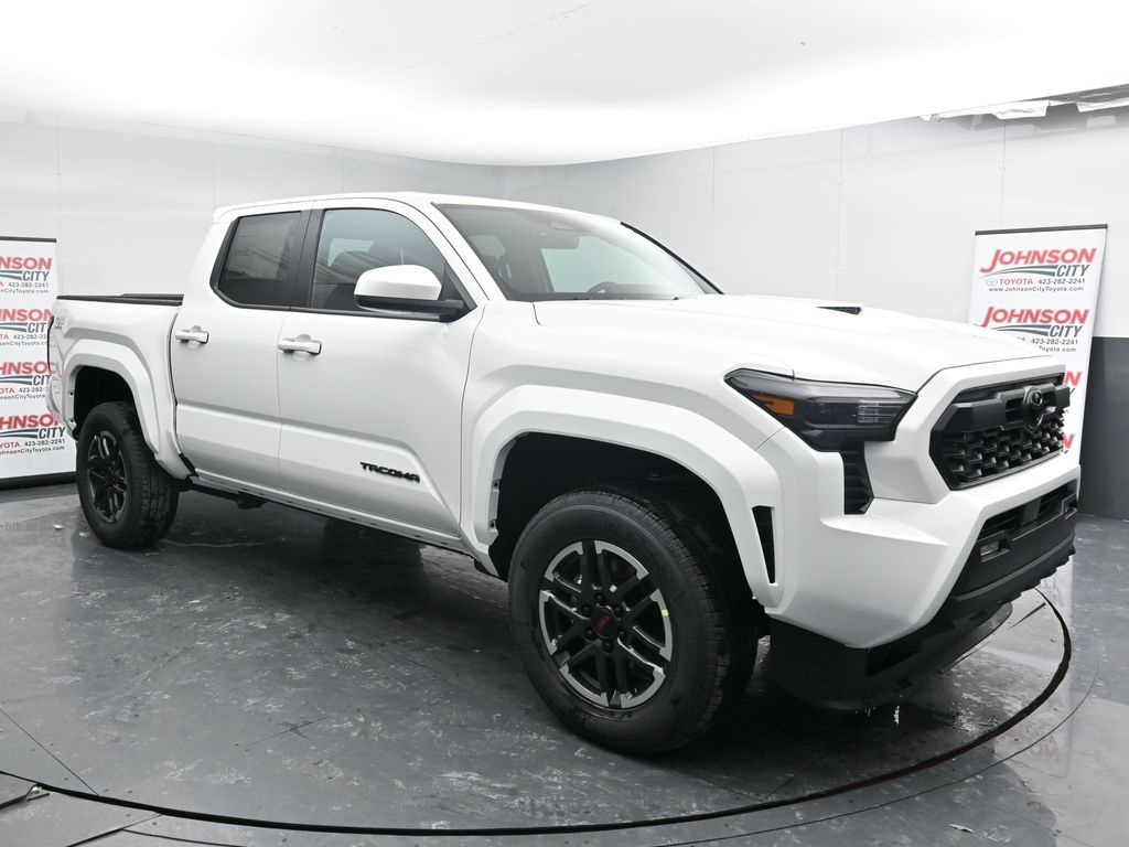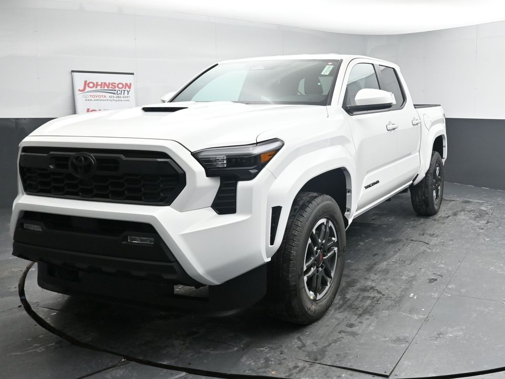The 2026 Toyota Tacoma TRD Sport Double Cab 4-Wheel Drive features an i-FORCE 2.4L turbocharged inline-4 engine and a 8-speed automatic transmission. This new Tacoma offers a comfortable interior with fabric-trimmed seats, a leather-trimmed manual tilt/telescopic steering wheel, and automatic climate control. The exterior is finished in Ice Cap and includes TRD Sport alloy wheels, LED bed lighting, and LED fog lights. Safety features include Toyota Safety Sense 3.0, Blind Spot Monitor, Rear Cross-Traffic Alert, and a digital gauge cluster. This Tacoma is designed for both work and play, with a double cab, all-weather floor liners, and a TRD Sport package.